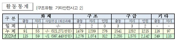 ○ 구조 2건(기타안전사고 2)