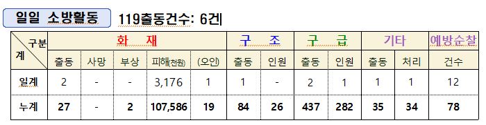 인제소방서 일일소방상황(3. 31.)