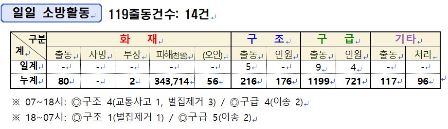 인제소방서 일일소방상황(8. 12.)
