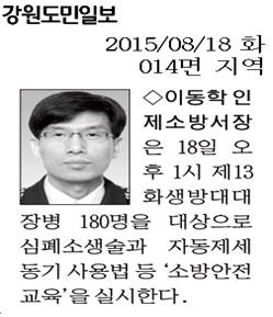 | 151 | 2015-8-28,강원도민생활체육대회 소방안전대책 추진 | 예방 | 2015-08-28 | 677 | |