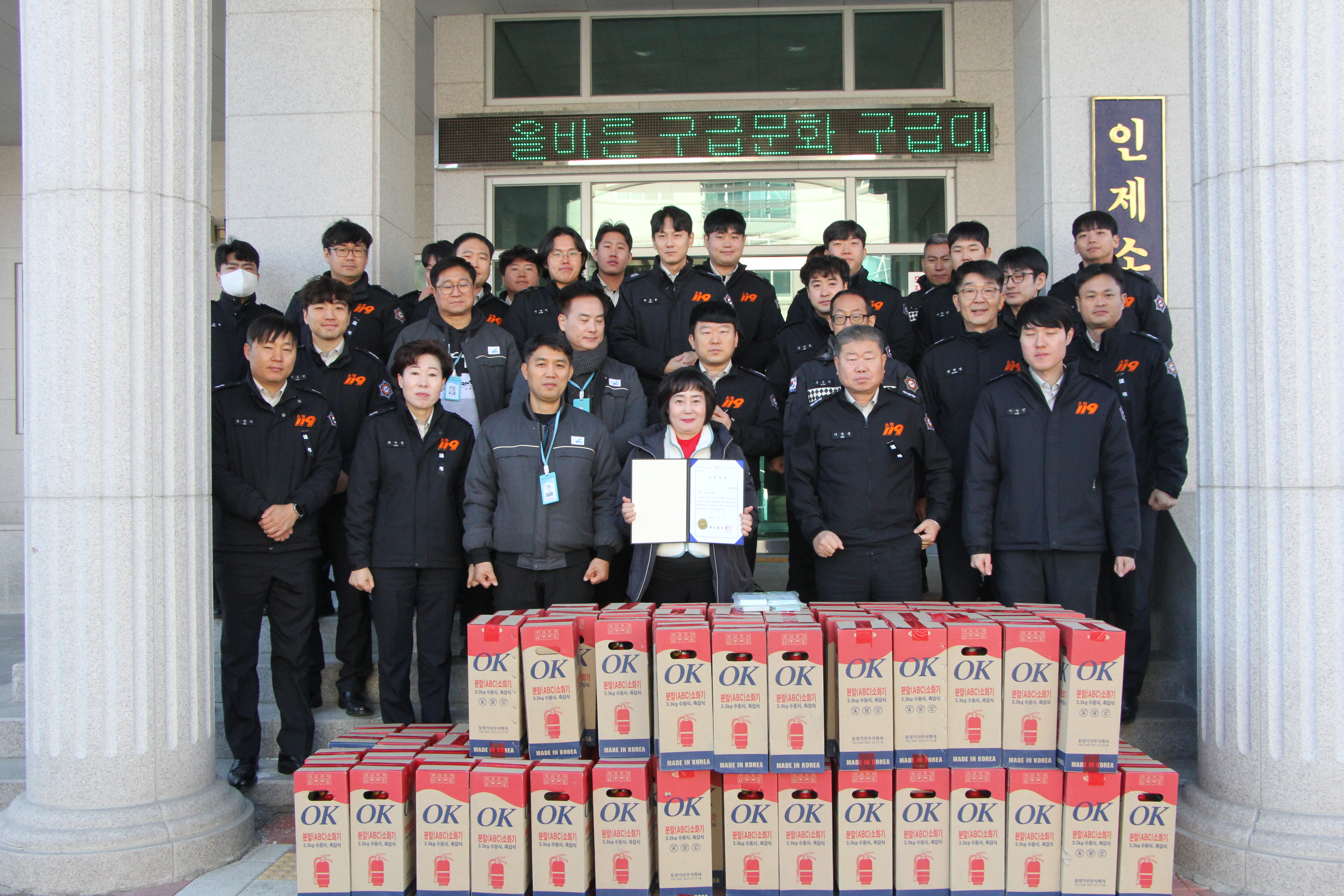 금일 (주)조은ENC에서 인제소방서로 소화기 100대를 기부하였습니다.