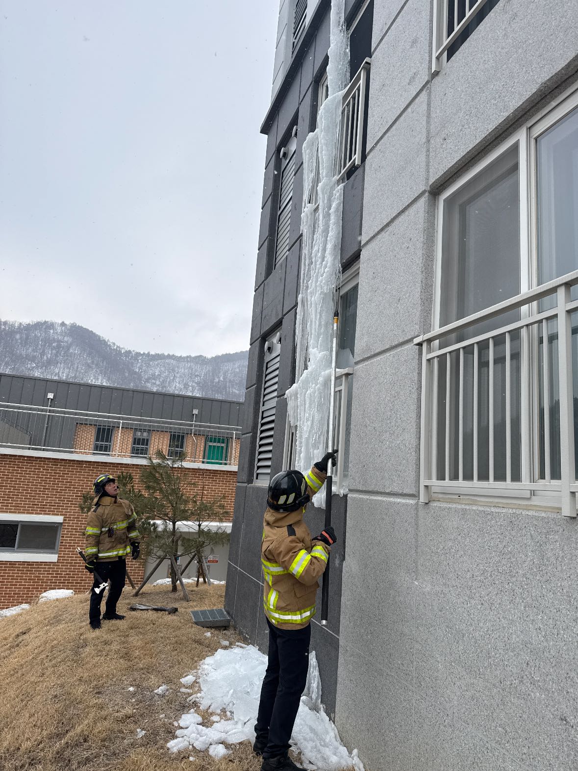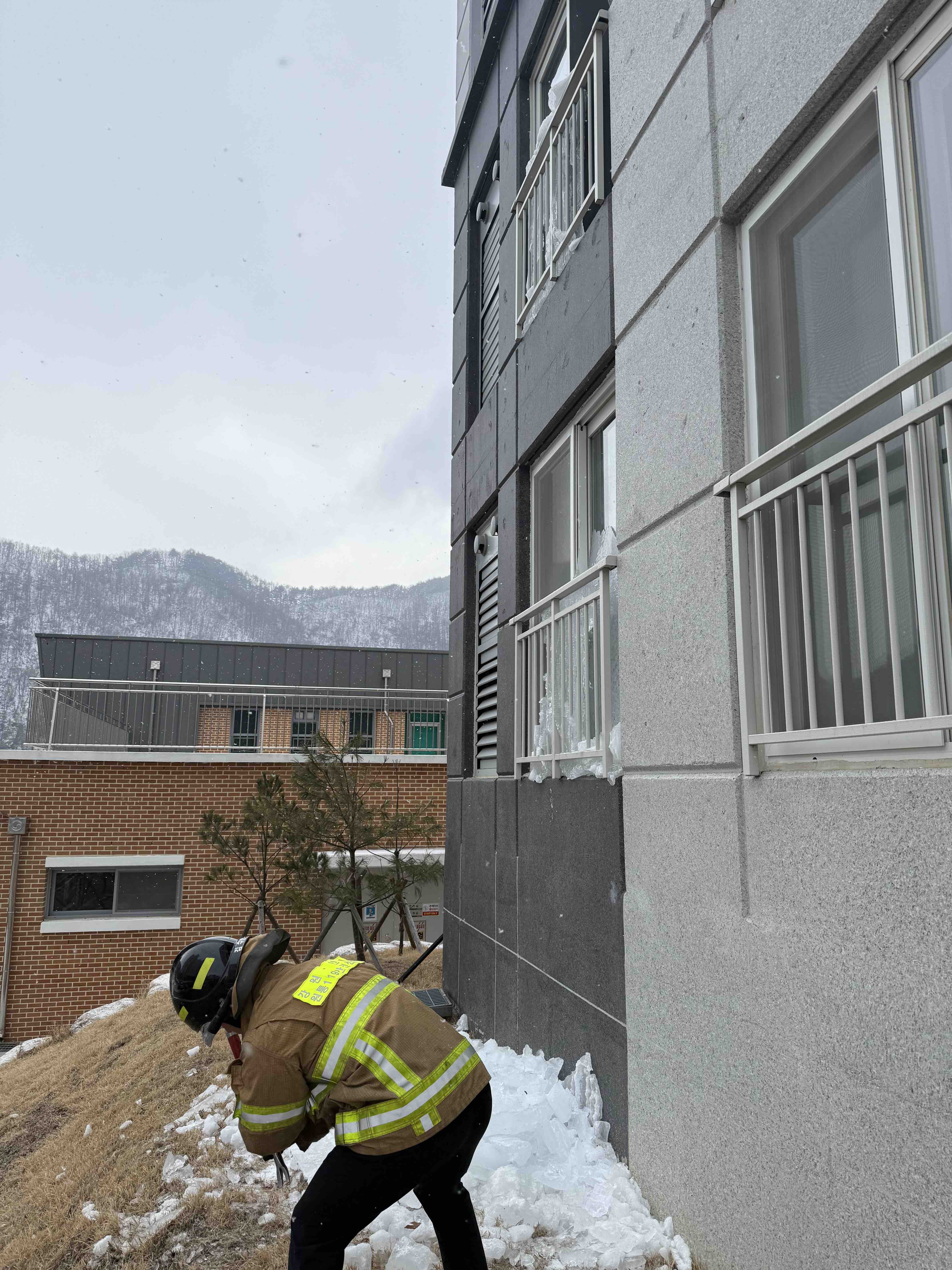 금일 인제소방서는 인제군 서화면 천도리에 있는 아파트에서 건물 2~3층 높이의 고드름 제거 작업을 실시하였습니다.
