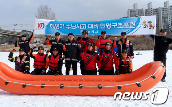 인제소방서 해빙기 인명구조 훈련[뉴스1]