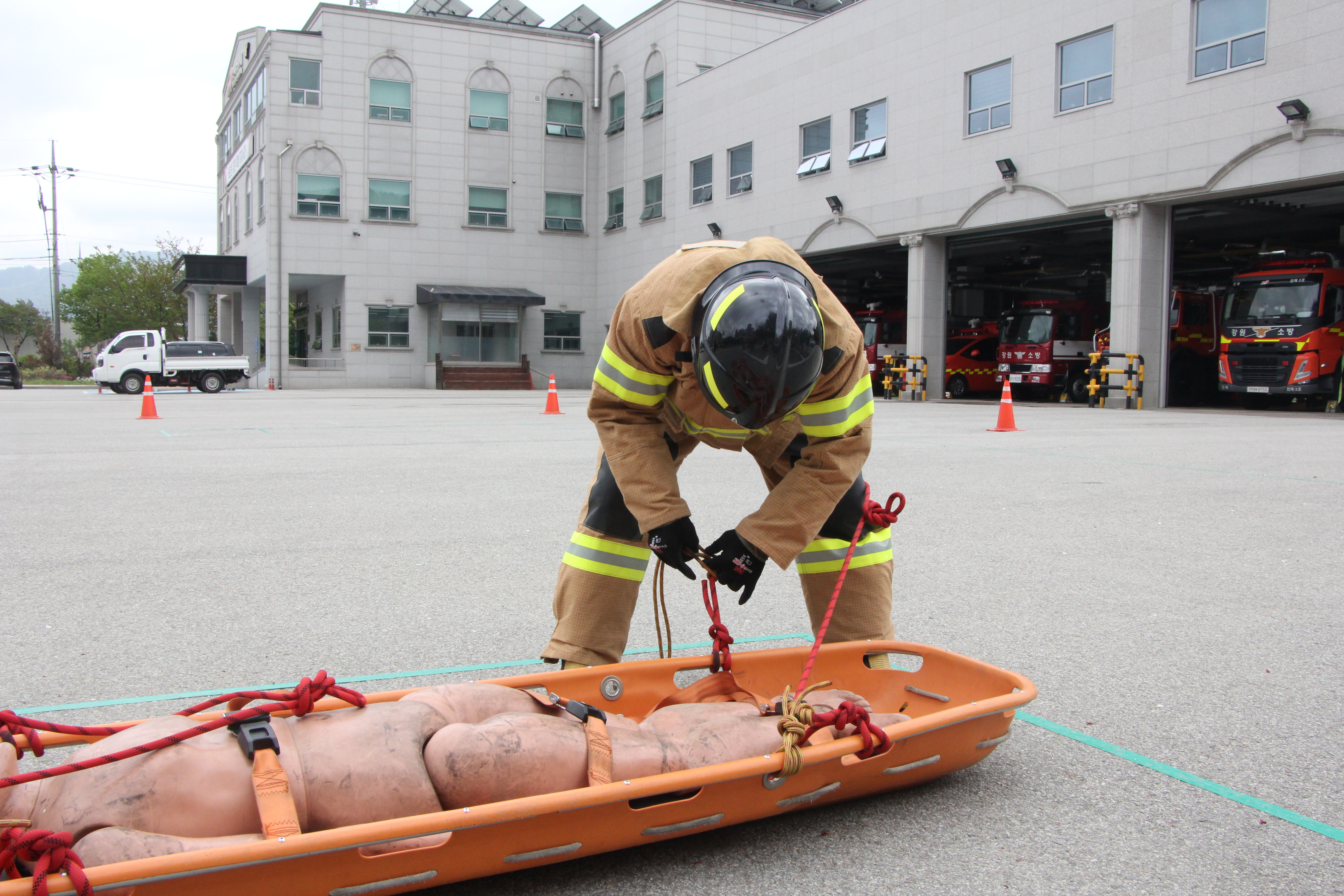 소방기술 경연대회는 ▲4인조법 ▲구조기술 ▲소방호스 전개 및 회수 ▲심폐소생술 술기 ▲외상환자 평가로 이루어져있으며 경연대회를 통한 현장대응 능력 강화를 목적으로 하였다.