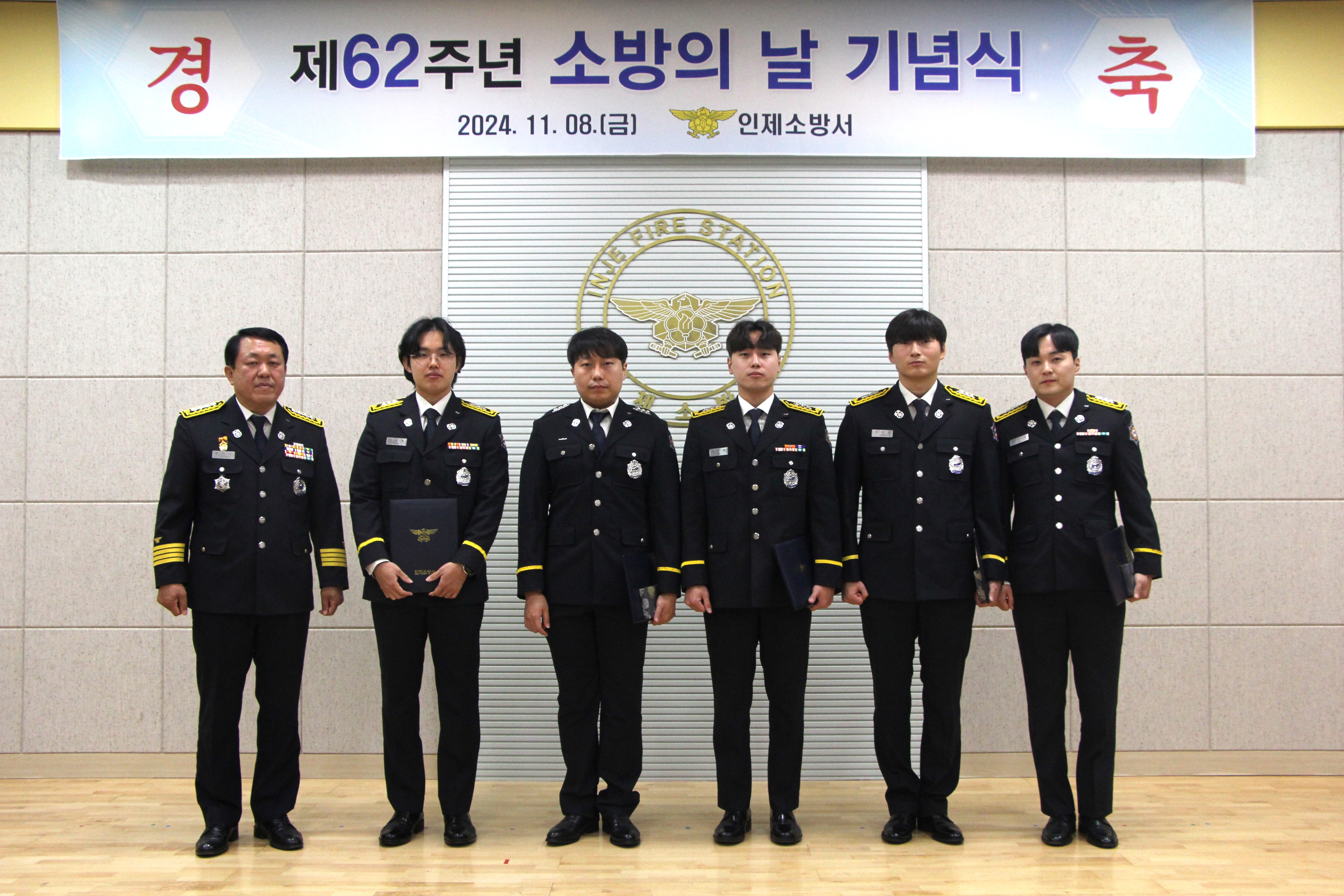 약 100여 명의 내빈이 행사에 참여하였으며 ▲유공자 표창 수여 ▲기념사 및 촬영사진 ▲단합인제소방서, '제 62주년 소방의날' 행사 실시을 위한 소통행사 순으로 행사가 진행되었다.