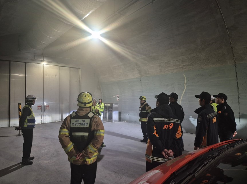 이번 훈련은 겨울철 통행이 증가하는 인제양양터널에서의 화재 및 인명 구조 상황 발생 시 신속한 대처 능력을 함양하고자 마련됐다.
