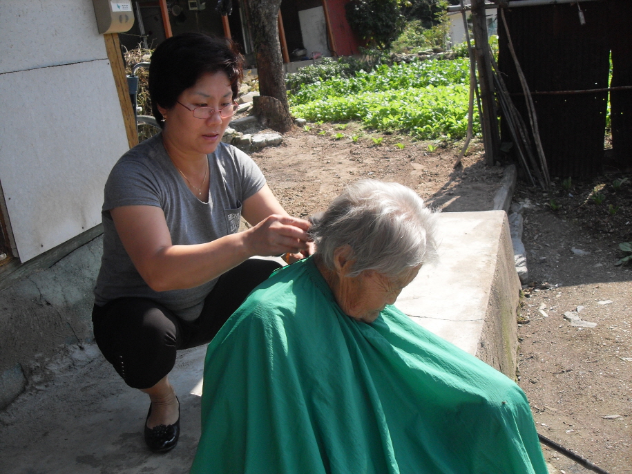 9월24일 고양리 함광선 할머니 외 2분에게 이발봉사를 9월28일엔 태봉안에서