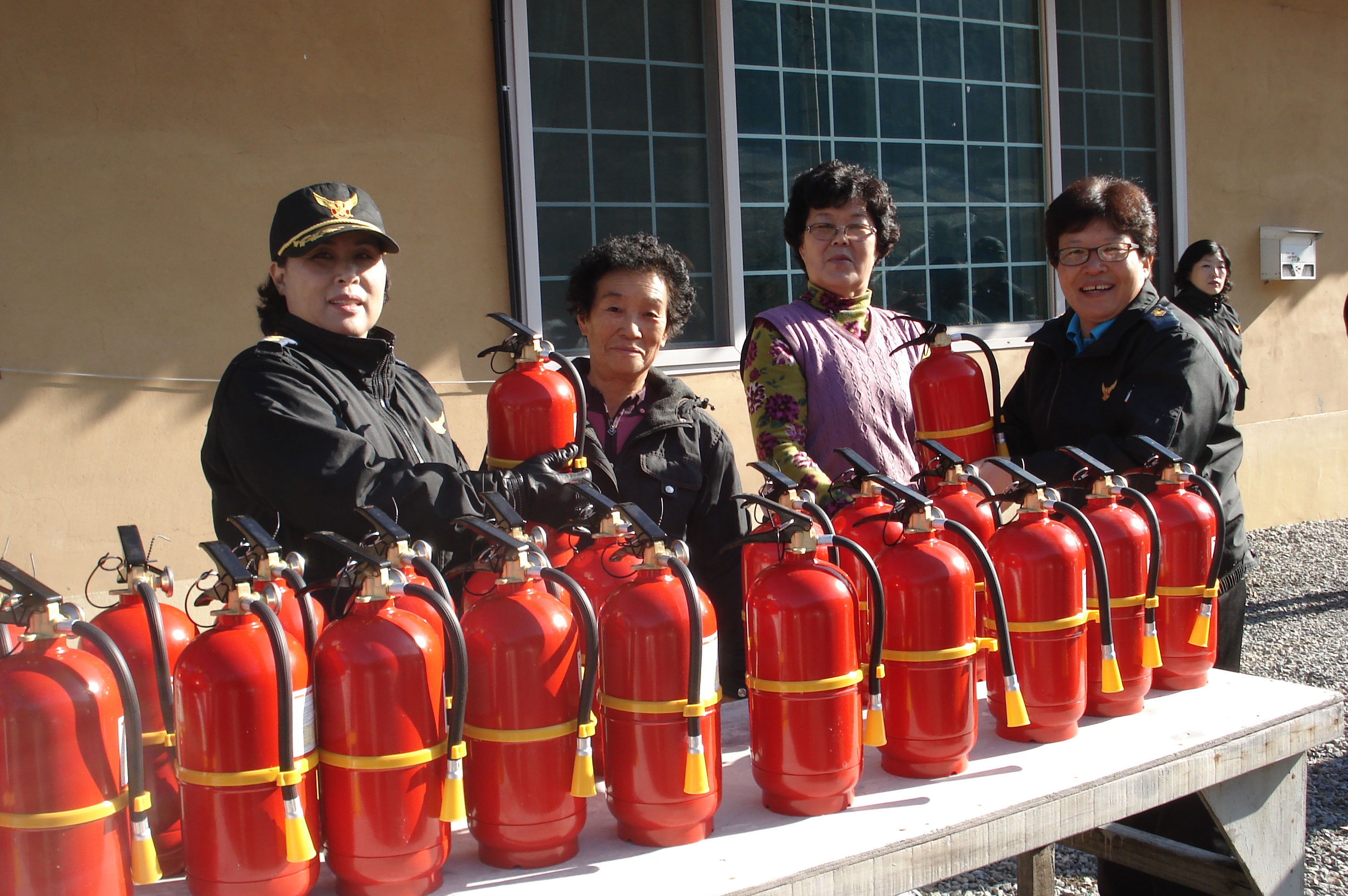 마을주민이 참석한 가운데 소화기 25대를 기증하엿읍니다.