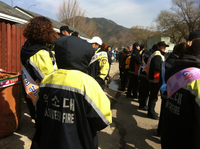 정선여성의용소방대(대장 장순자)에서는 3.1절 건강달리기행사에서 정선소방서와 정선ㅇ의용서방대 대원들과 함께 공설운동장에 모임 군민대상으로 산불조심 캠페인을 캠페인을 실시하였다.
