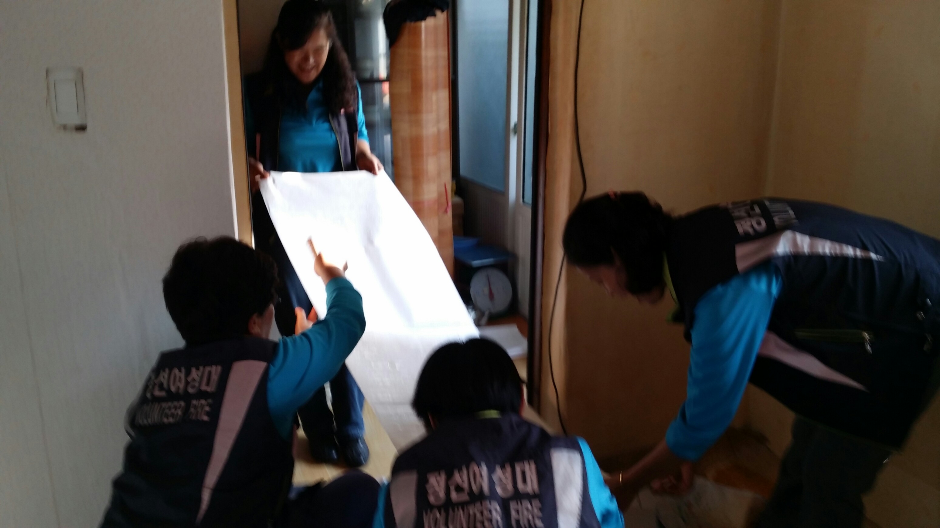 정선여성의용소방대에서는 10월 25일 정선읍 봉양리에서 도배봉사를 실시하였다.