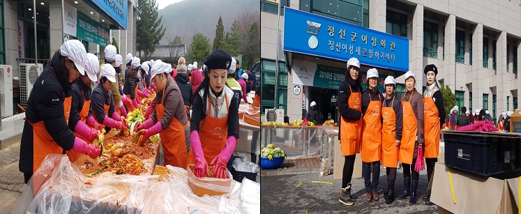정선 관할 여성의용소방대 9개대에서 2018.11.15.(목) 정선군여성회관에서 저소득층을 위한 김장담그기 봉사활동을 실시하였습니다.