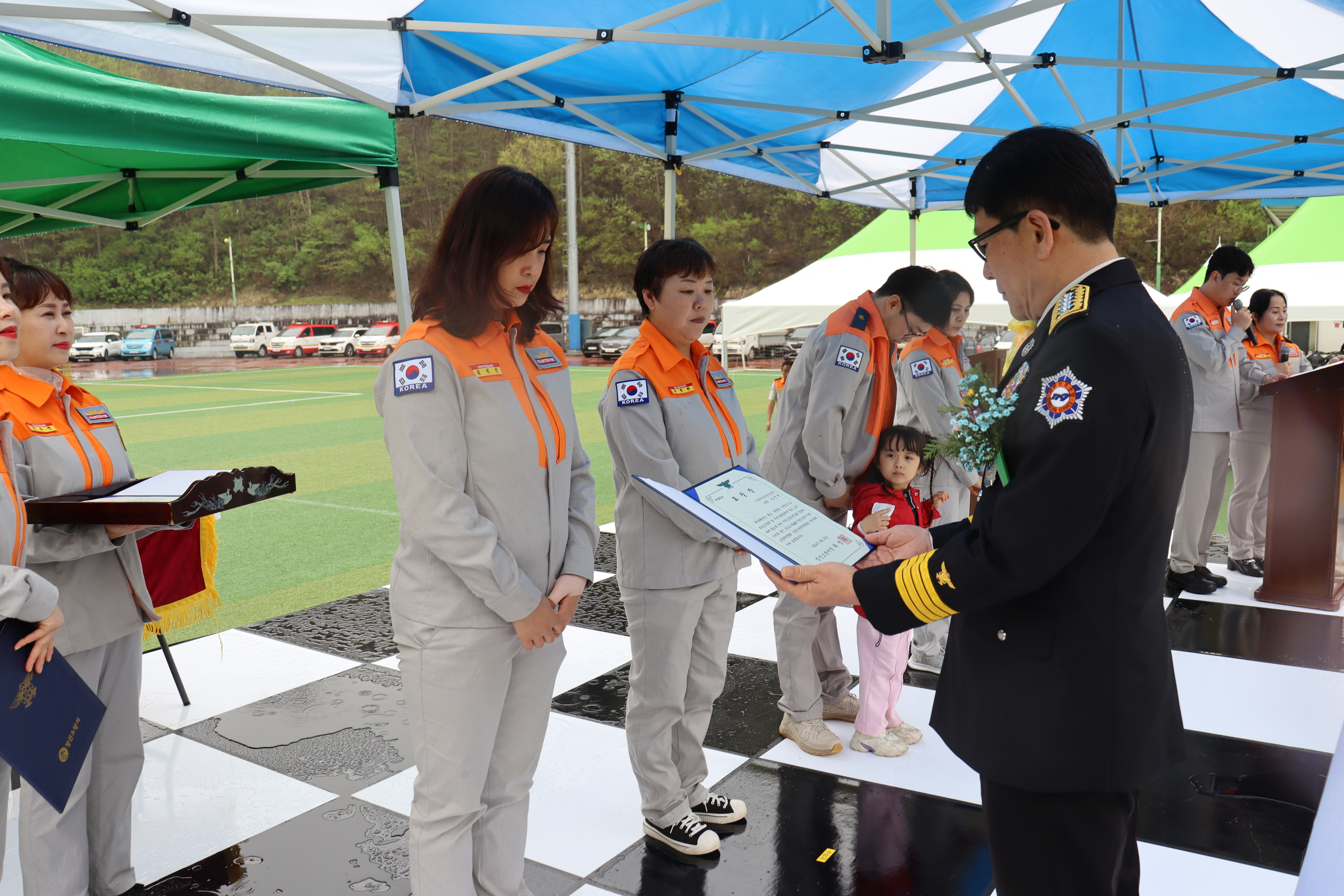 ➤ 읍·면 의용소방대 19개대 500여명의 의용소방대원들은 화재진압 4인조법, 구조기술, 외상환자 평가 등 3개 분야 5개의 기술경연 종목, 체육행사 및 장기자랑에서 평소 갈고 닦은 실력을 뽐내며 대원 상호 간 우호 증진 및 화합의 시간을 가졌다.