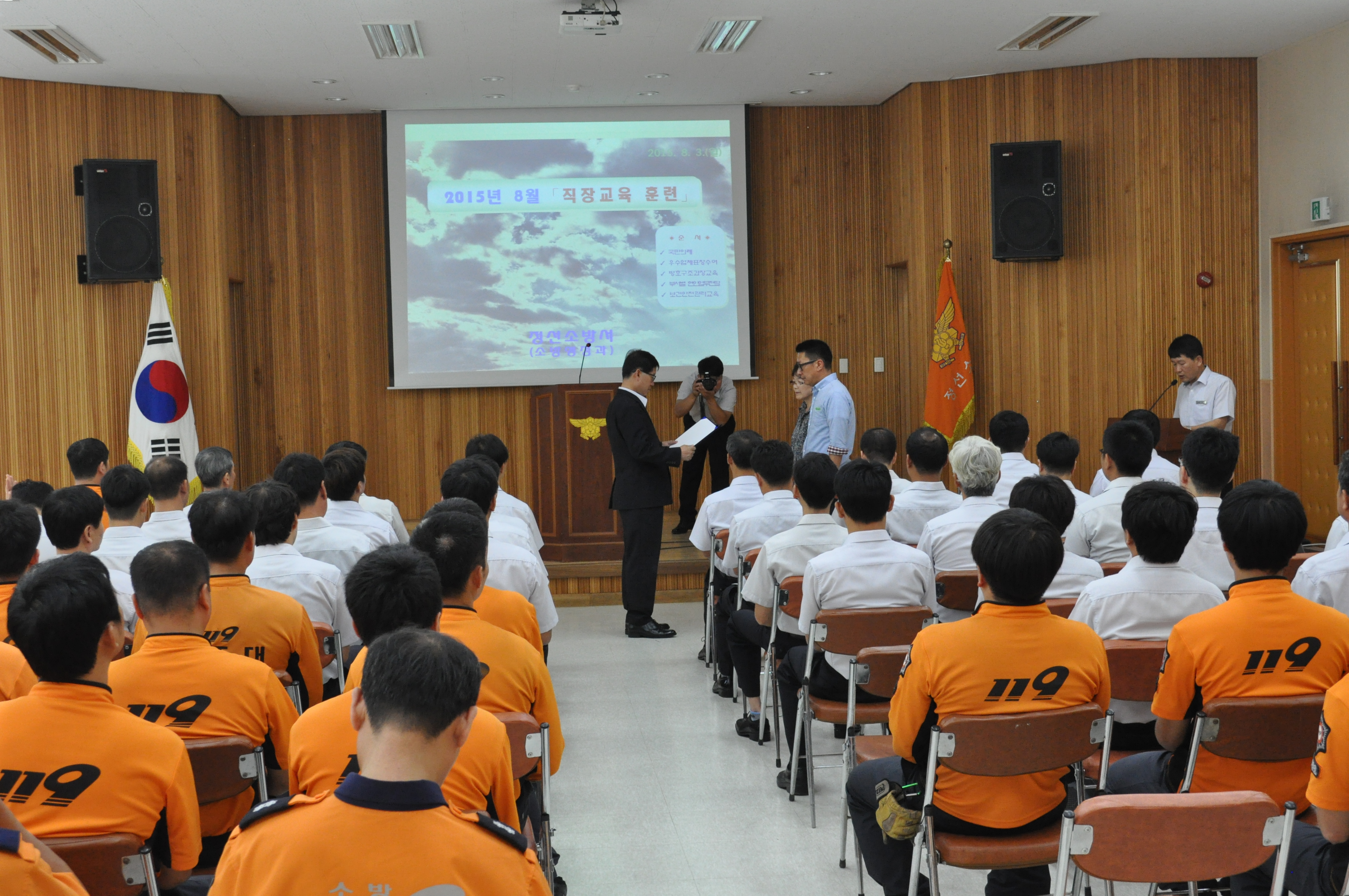 정선 소방서(서장 이기중)은 2015.8.3(월)에 정선소방서 대회의실에서 전직원을 대상으로 직장 교육을 실시하였습니다. 이번 교육에는 안전 교육도 포함되었습니다.