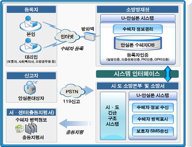 무료 회원가입 후 환자의 전화번호, 주소, 지병, 다니는 병원 등을 입력하면 119에 신고 시 자동으로 입력사항이 나타나 응급환자의 소생률을 높이고 보호서비스가 제공될 수 있도록 하는 시스템입니다