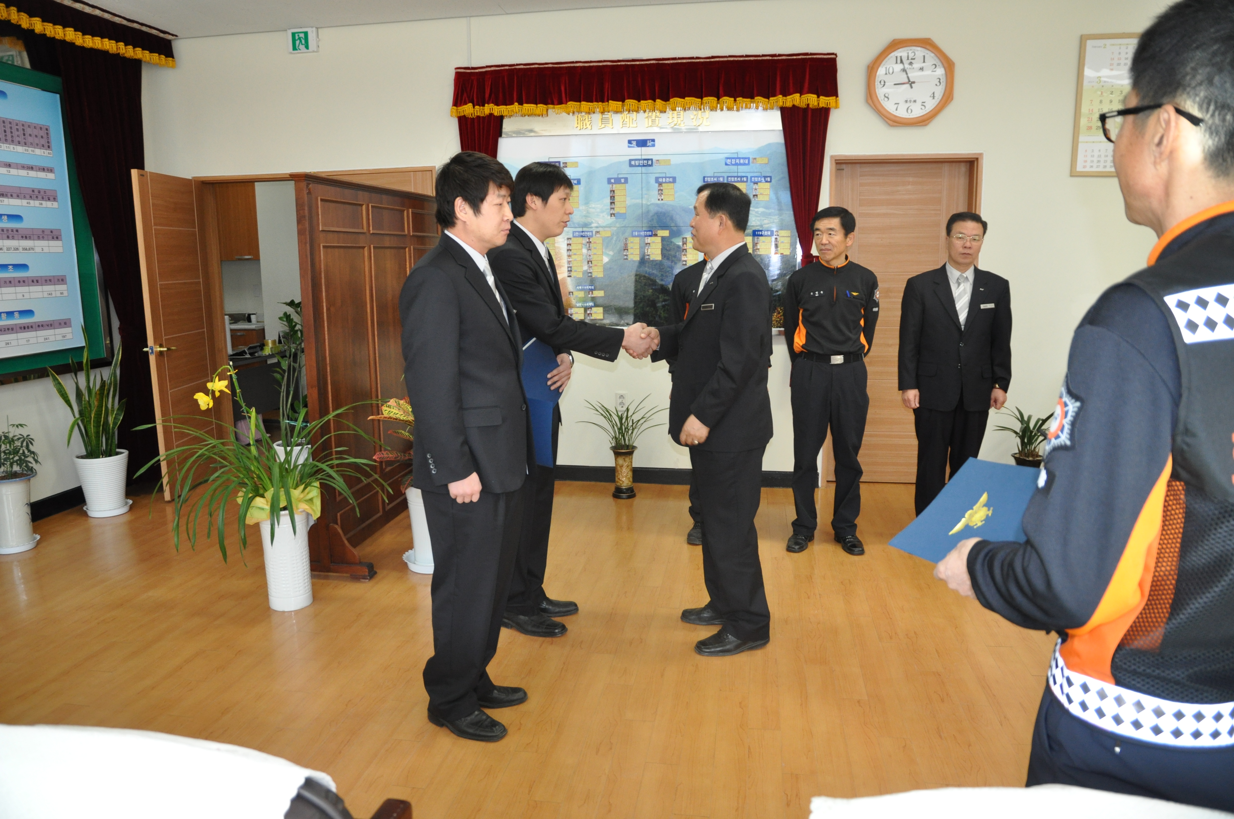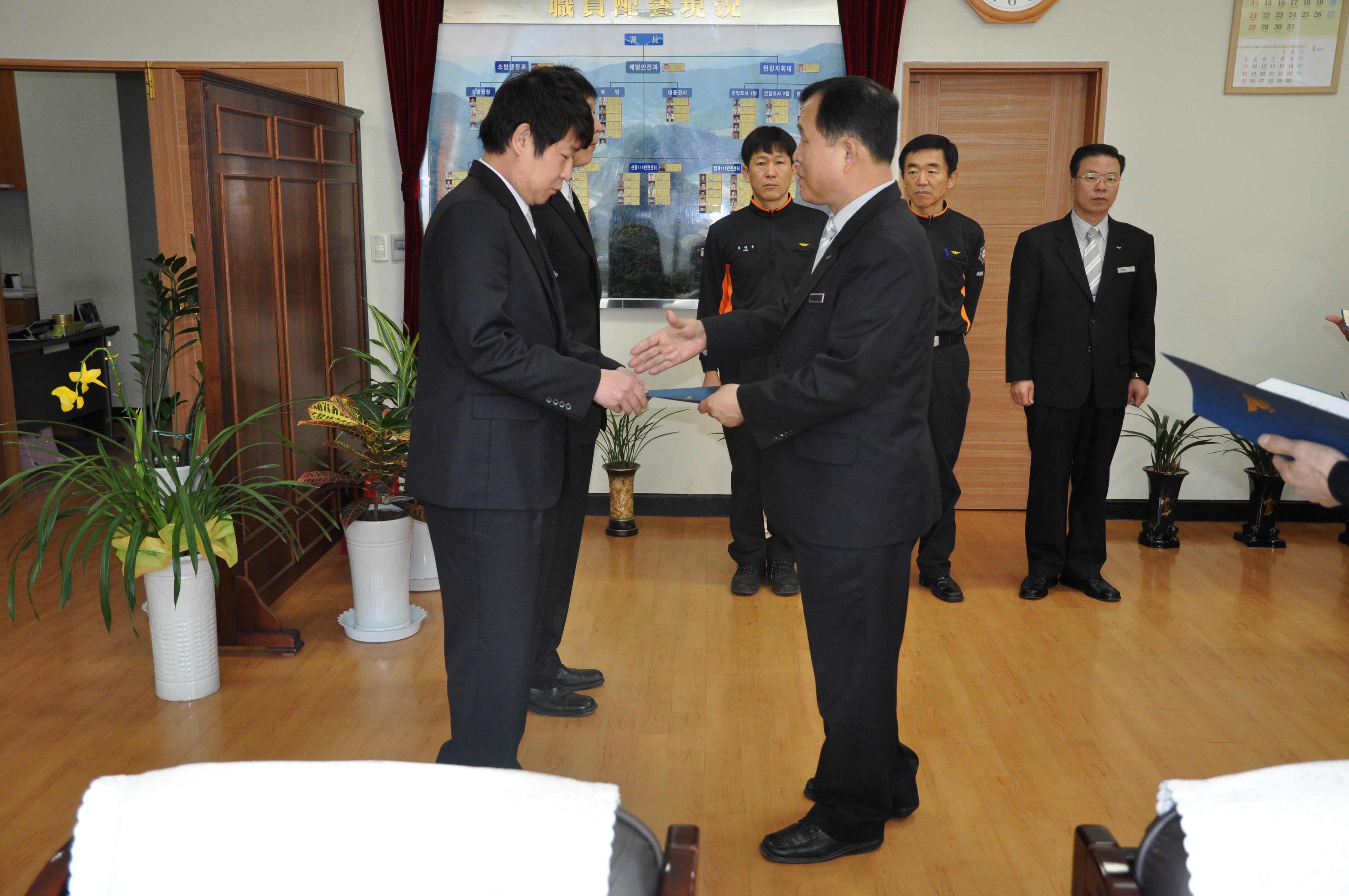 정선소방서(서장:우원기)는 2010년 4월 2일자 인사발령자(전출자, 인사이동)에 대한 신고식을 실시하였습니다.