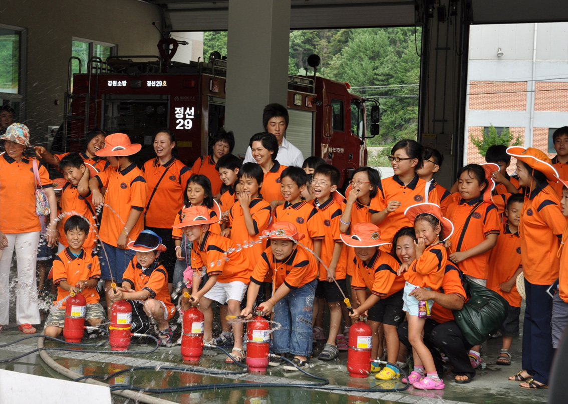 정선소방서(서장 정승진)에서는 2010년 8월 5일 무더운 여름 하계 소방안전체험교실을 운영하였다. 행복한 가정을 이루고 있는 다문화가족과 아동복지센터 어린이 60명이 참가한 가운데 즐거운 소방체험이 되었다. 기온이 33도 이상 오르는 폭염주의보에도 불구하고 해맑은 아이들의 모습은 더위도 잊어버리게 만들었다. 이날 체험교실은 화재예방법, 화재시 대피요령, 응급처치실습, 화재진압체험, 물놀이 안전교육, 보트 · 제트스키 탑승 체험 등의 순서로 운영되었다.