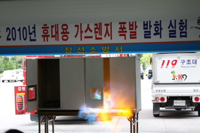 정선소방서(서장 정승진)는 화재원인의 과학적인 조사방법 연구를 위해 10월 4일 도 소방본부 및 각소방서 화재조사 담당자들과 휴대용 가스렌지 누출가스로 인한 폭발 및 발화 현상 재현 실험을 실시했다.