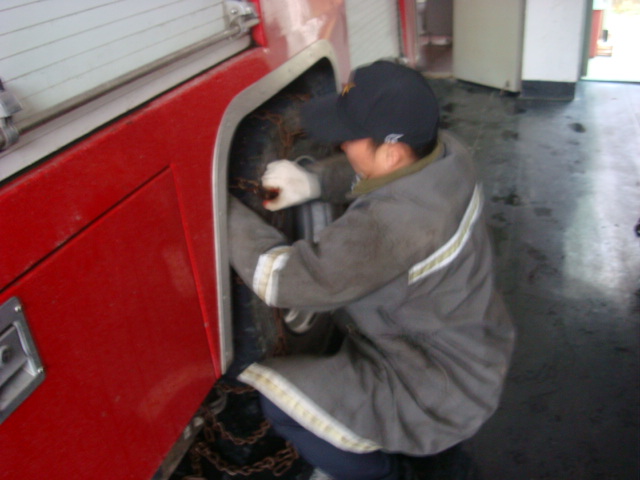 폭설에 따른 펌프차량 체인장착 실시~~!!