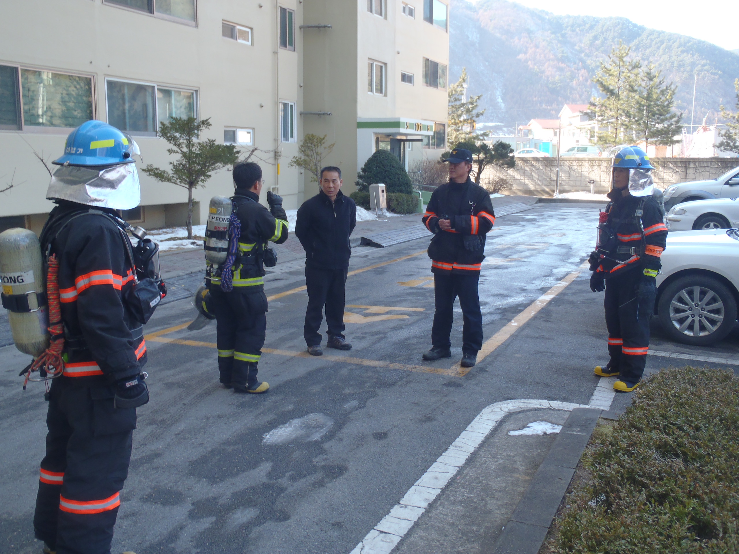 금일 정선소방서(서장 박창진) 정선119안전센터에서는 금일 14:00 분경 부터 현대아파트 고층건물 현지적응훈련을 실시하였습니다,