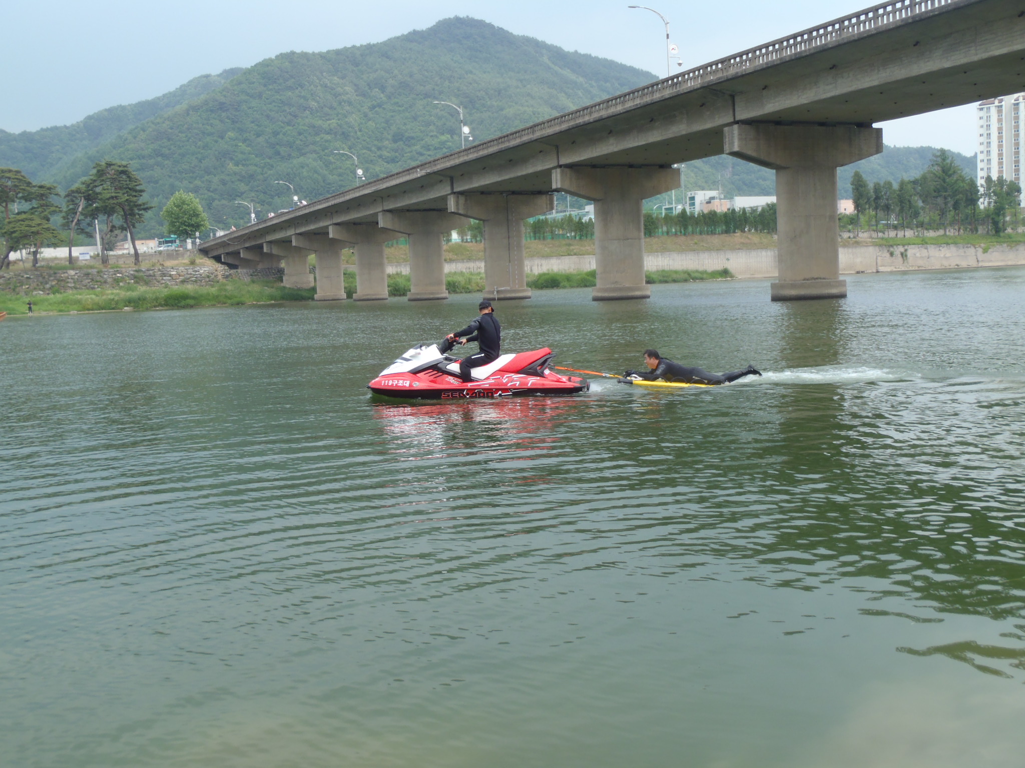 정선소방서(서장 박창진) 119구조대는 7월에 실시되는 긴급구조 훈련을 위하여 자체 훈련을 실시했습니다. 이번훈련은 풍수해 대비 및 재난상화에 따른 가상훈련을 하기 위한 자체훈련으로 호버크레프트, 제트스키,수난보트, 등 인명구조에 필요한 장비를 활용하고 활동범위 및 인명검색시 제반사항등을 파악하는 단계로 이루어 졌습니다. 정선소방서는 앞으로도 7월 긴급구조훈련을 위해 몇차레 자체훈련을 실시할 예정입니다.