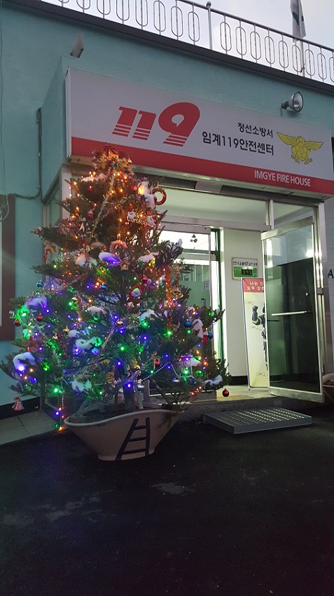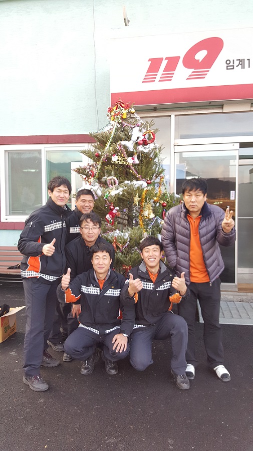 2015년 12월 11일 임계센터장님 및 주간근무직원들은(3팀) 올 한해를 마무리하면서 다가오는 12월 25일 크리스마스 성탄절을 맞이하여 임계센터 앞 입구에 크리스마스 트리를 설치하였습니다. 이기중서장님덕분에 청사도 깔끔해지고 한껏 더욱더 화사로워진 임계센터를 방문하시거나 지나가시는 지역주민 및 직원분들의 마음도 따뜻해졌으면 좋겠습니다. 아리아리 정선소방 메리 크리스마스~♥