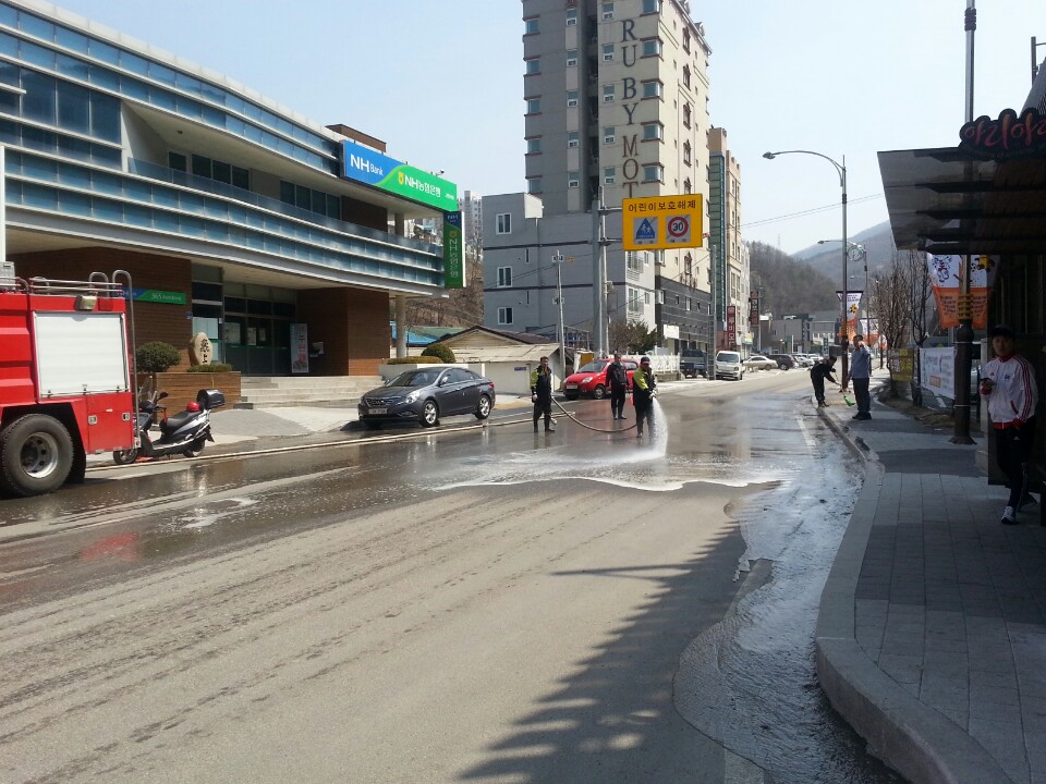새봄맞이 도로변 물청소 실시