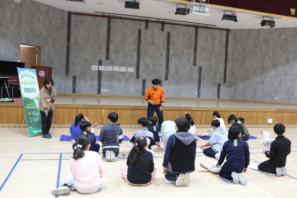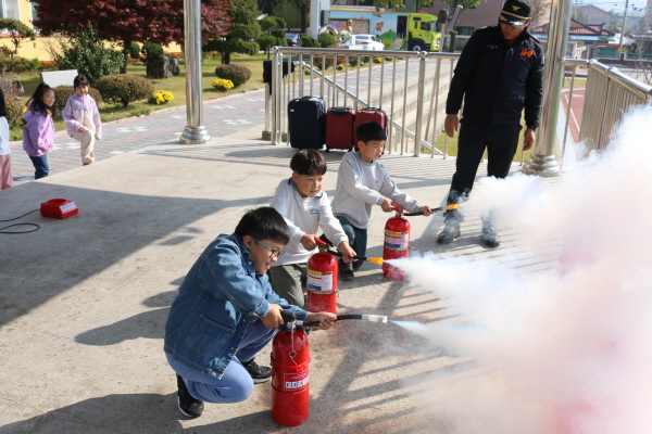 교육은 학년별로 4개의 조로 나누어 순환식 프로그램으로 진행하였으며, 소방인원 10여명이 교육을 지원하였고 학생 180여명이 교육을 받았다.