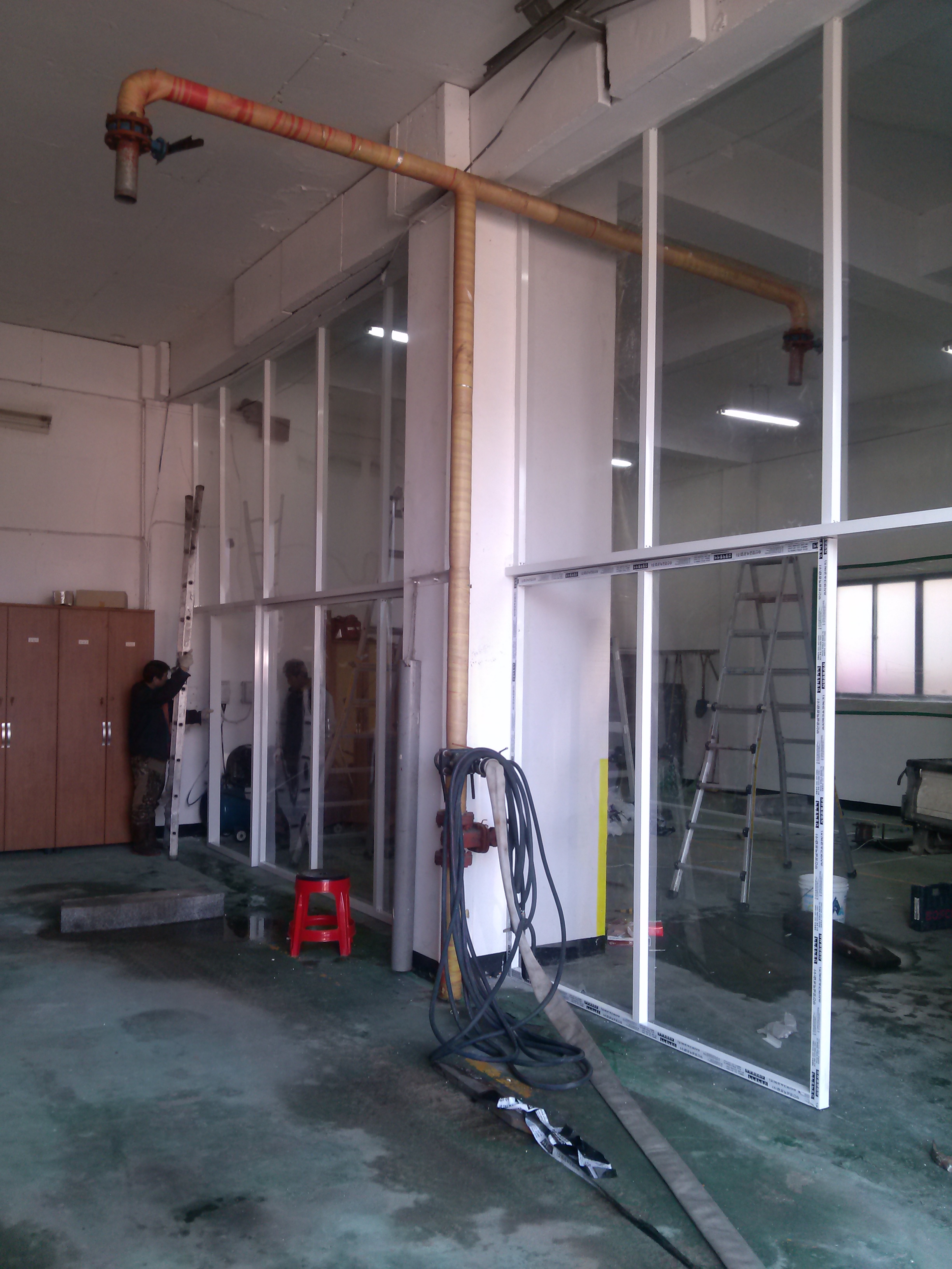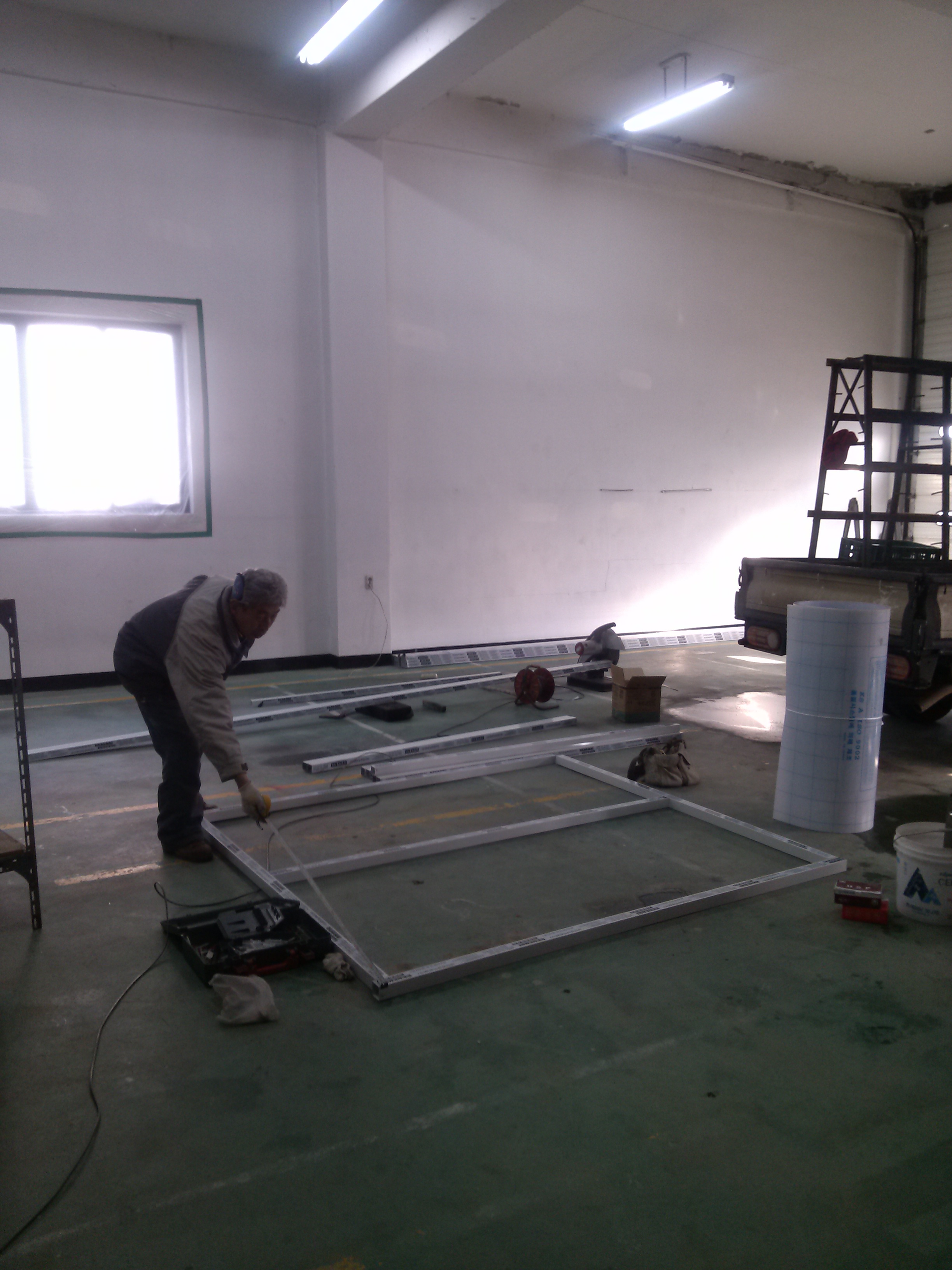 진부센터 소방차량차고 열손실방지 간이칸막이 설치중 사진입니다.