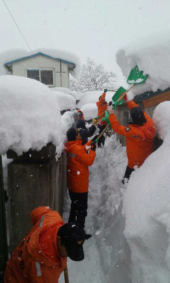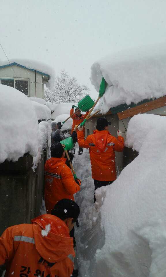 □ 평창소방서(서장 김남숙) 직원 30여명은 2틀째 강릉 폭설 피해지역인 강릉시 옥천동 한화생명 뒤 인근 주택가 골목길 및 지붕 위 제설작업을 펼쳤다.