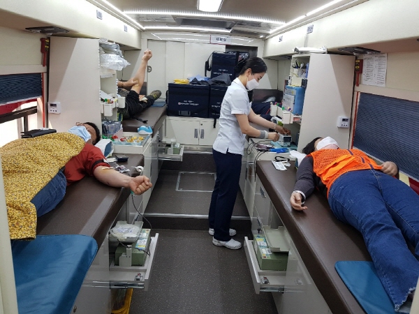 진부남ㆍ여의용소방대(대장 이문재, 최순옥)는 7일 진부119안전센터에서 코로나19로 인한 혈액 수급난 해소를 위해 헌혈 행사에 동참했다.