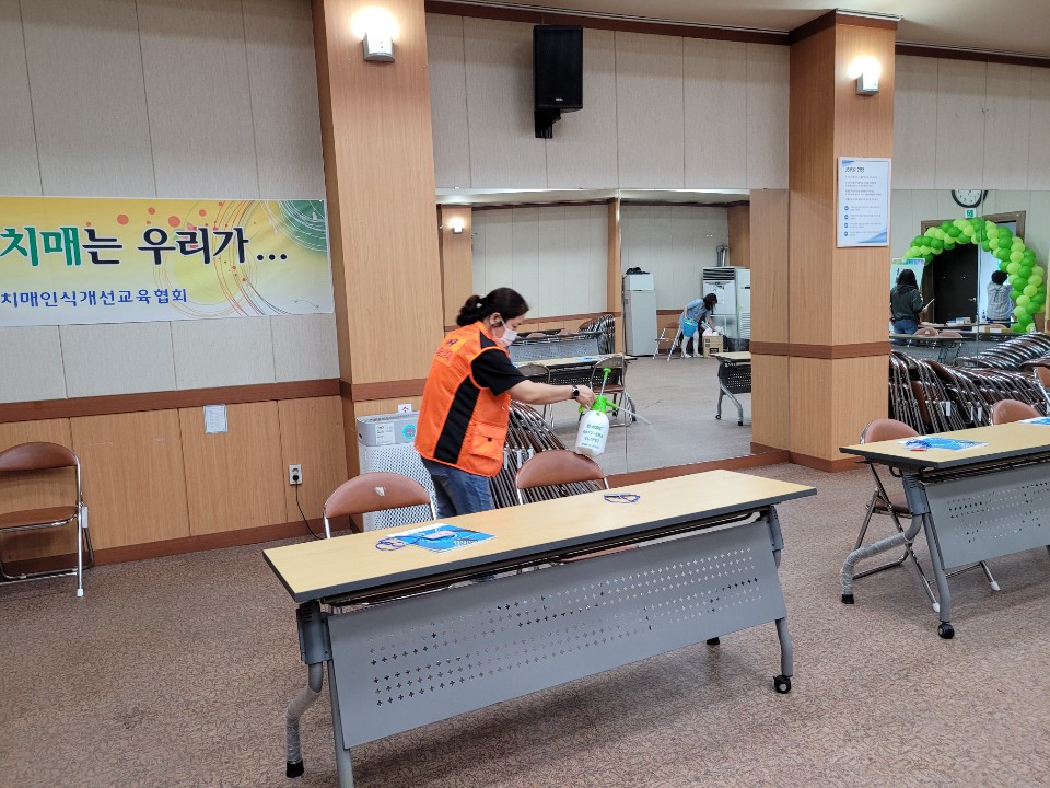 코로나19로부터 안심하고 교육을 들을 수 있도록 방역소독 봉사활동을 실시했다.