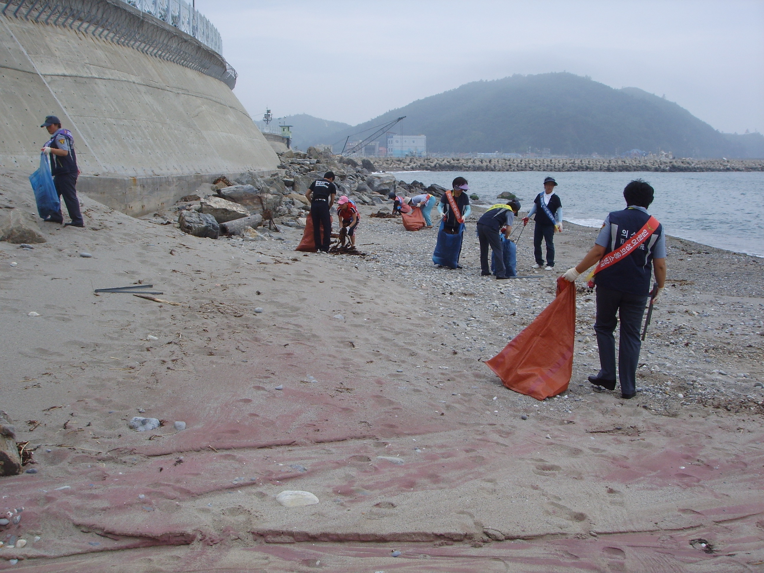 장마로 인해 떠내려온 쓰레기를 청소하였습니다