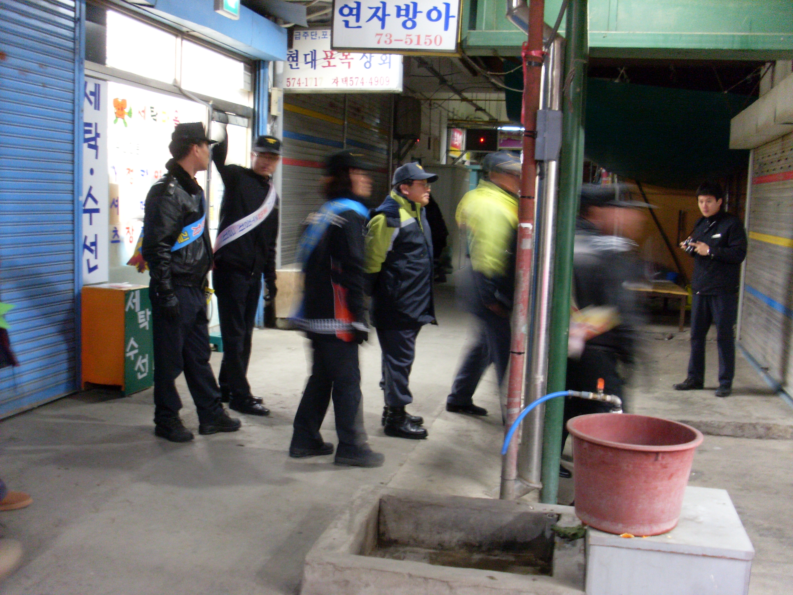 야간대기근무 서장님, 과장님, 계장님, 직원분들과 당번인 남,여대 대장님 대원님들과 함께 중앙시장 일원으로 소방시설 안전점검 및 화재예방순찰을 하였습니다.