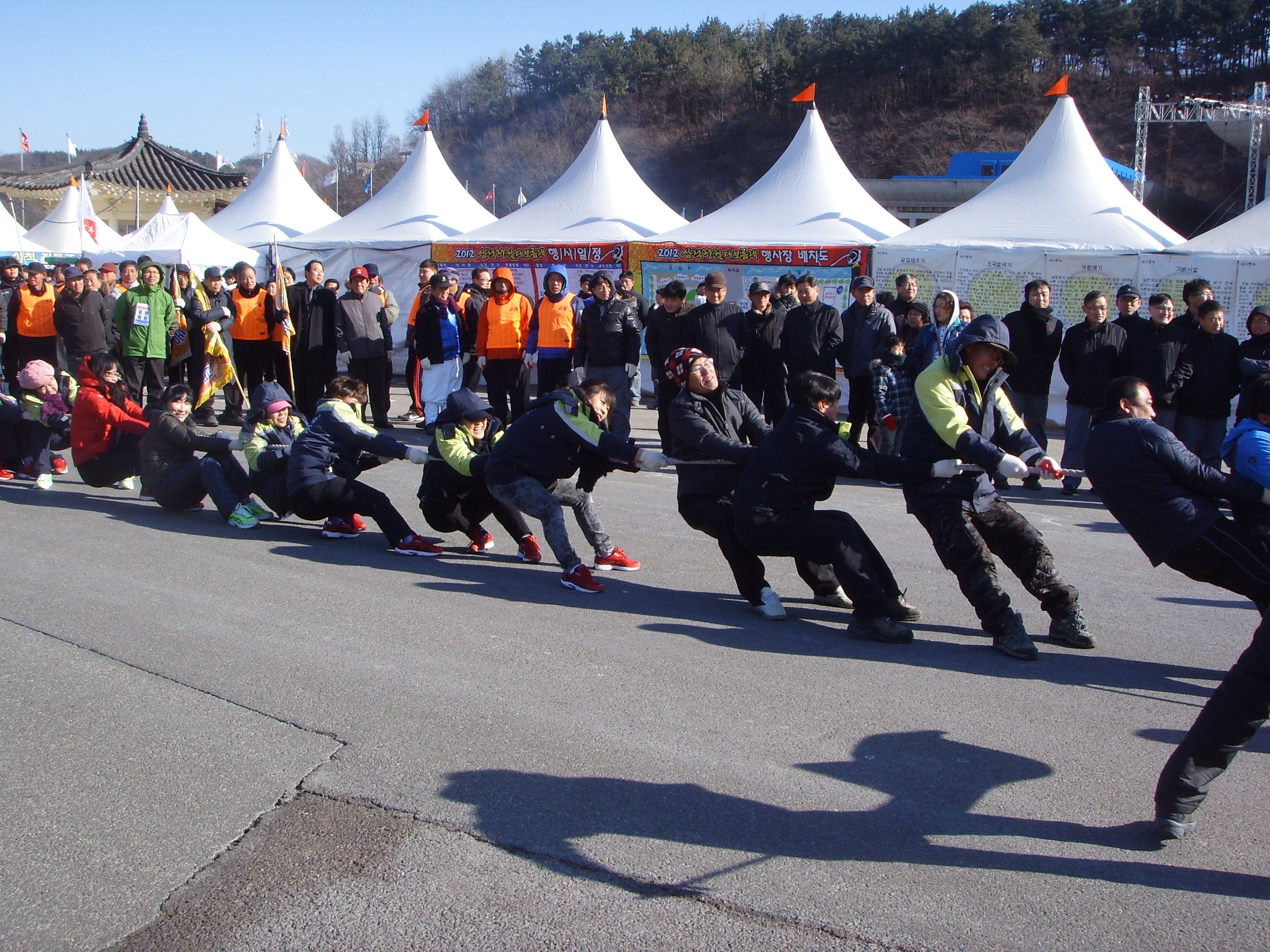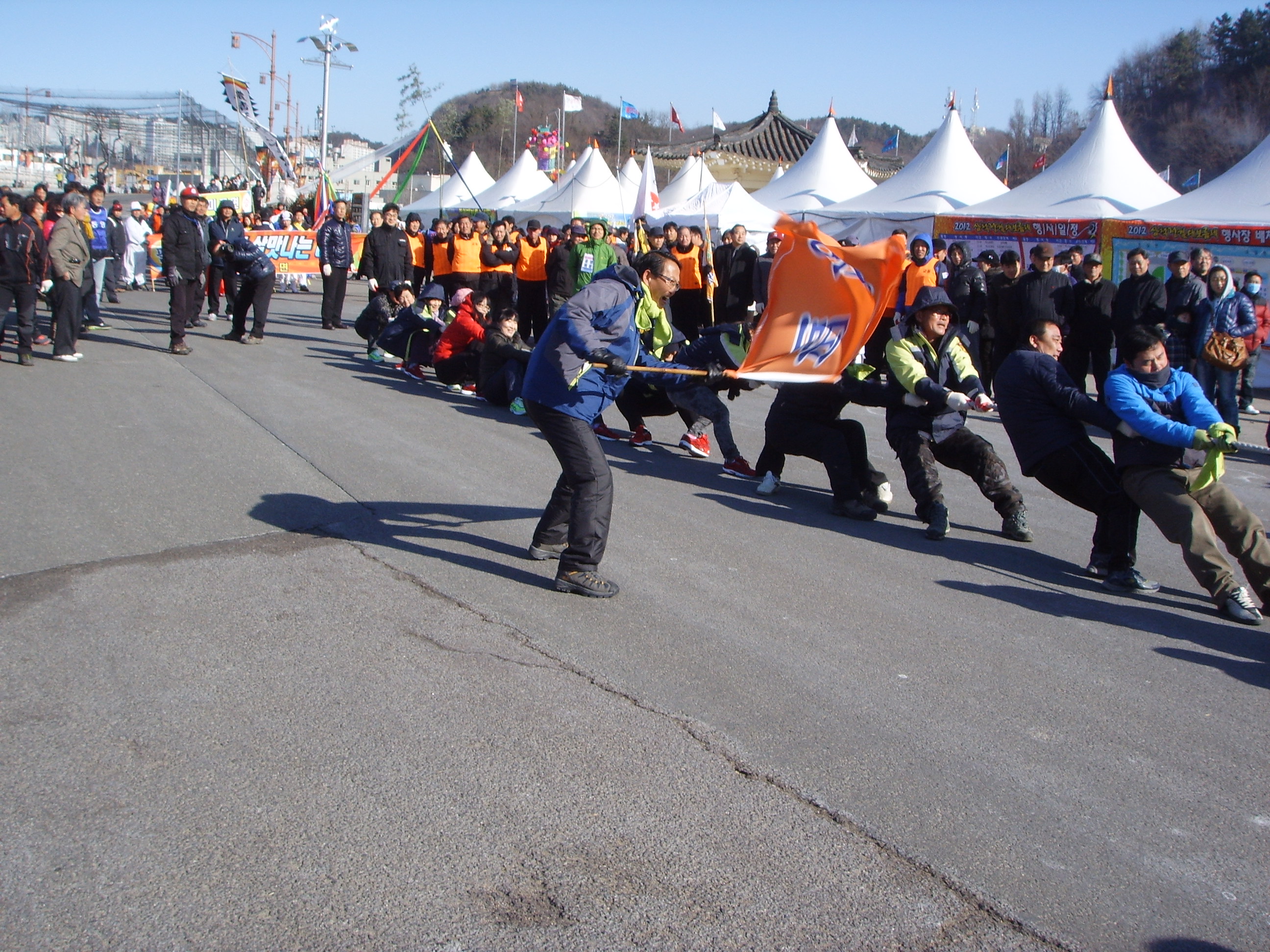삼척정월대보름제 기줄다리기경기에 원덕남,여의소대와 임원남,여의소대가