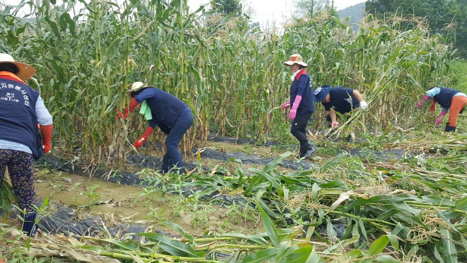 2017년 7월28일 06 :00 ~ 23:30 청주시 낭성면 수해농장에 토사제거, 토사묻은화분씻기, 옥수수대 제거를 하고 돌아왔습니다.