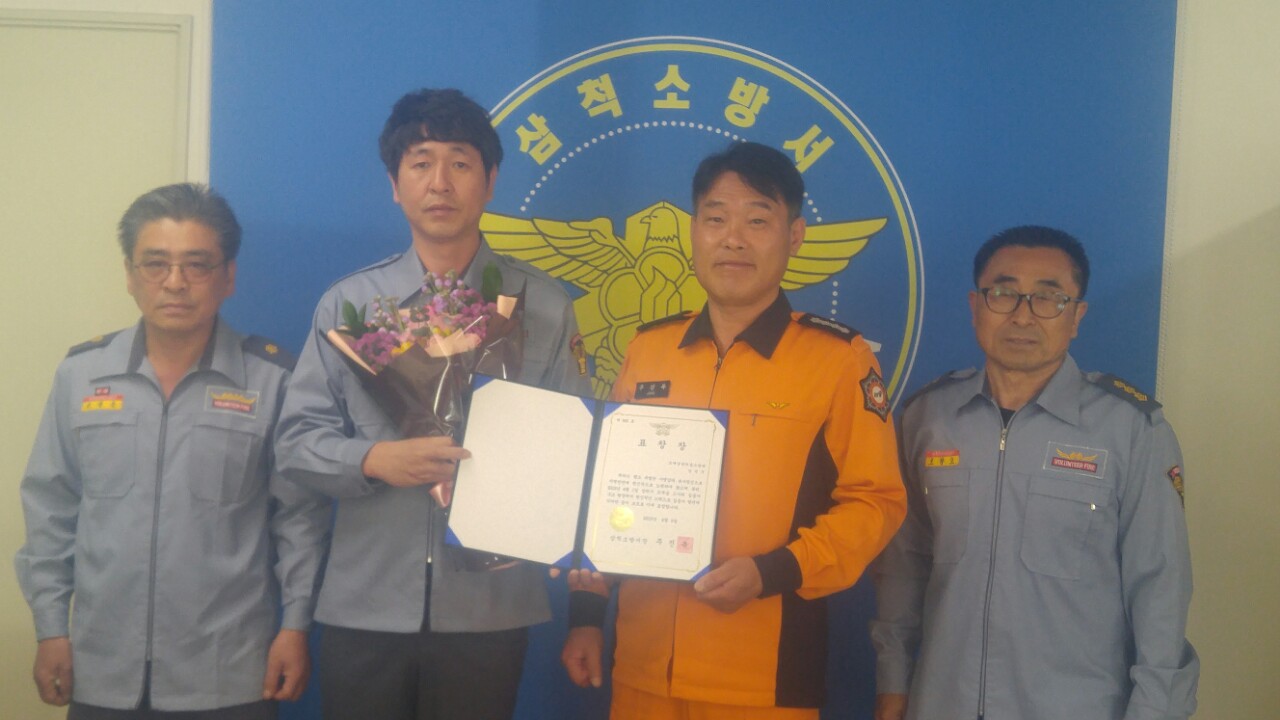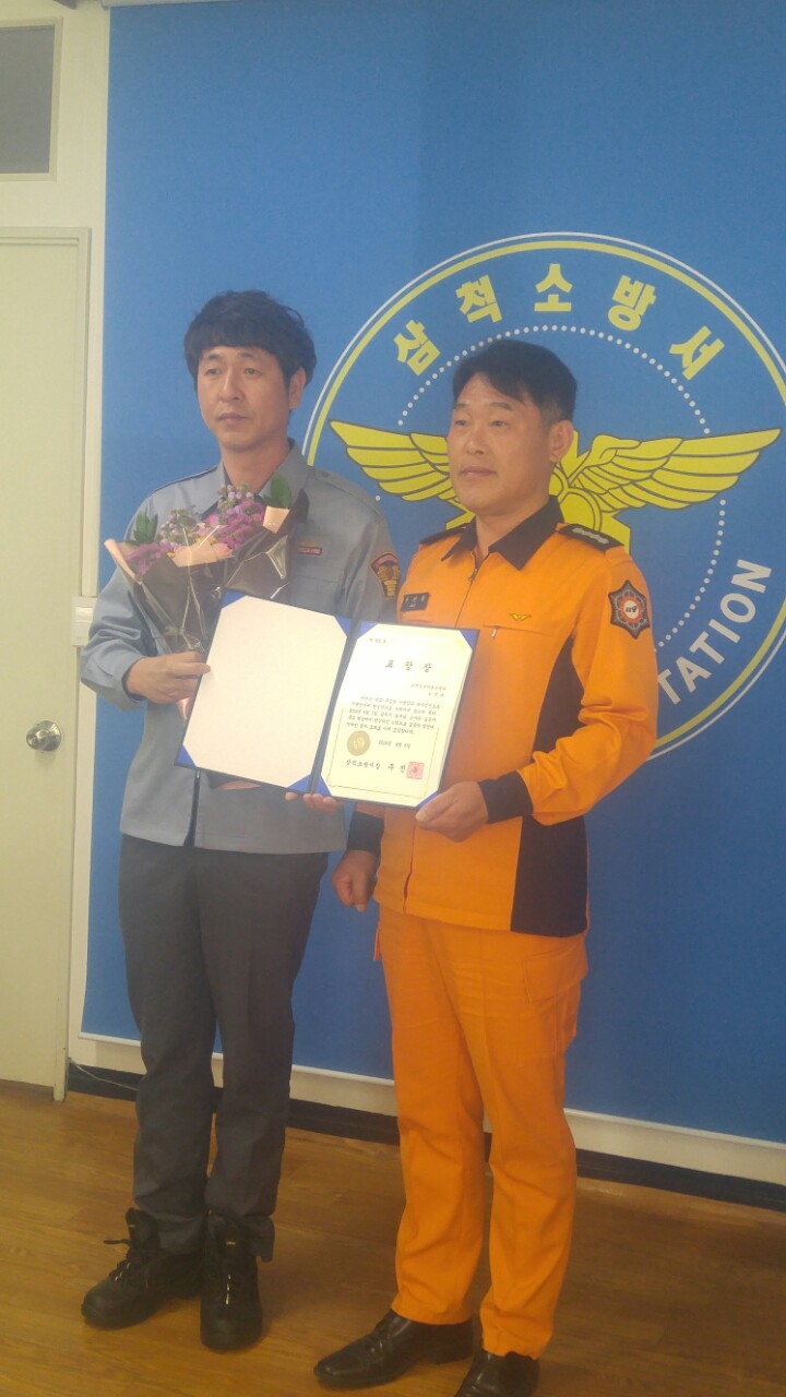 2019년 4월 1일 발생한 고사리마을 치매노인 수색활동중 발견 신고하여 그 공로를 인정받아 삼척소방서장님 표창수여함