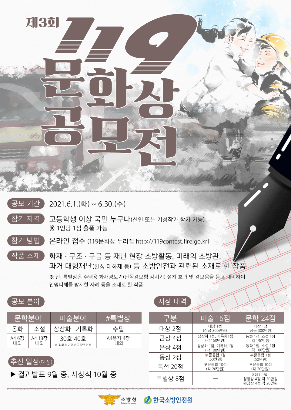 소방청에서 제3회 119 문화상을 개최하니, 붙임파일 참고하셔서 많은 참여 바랍니다~!