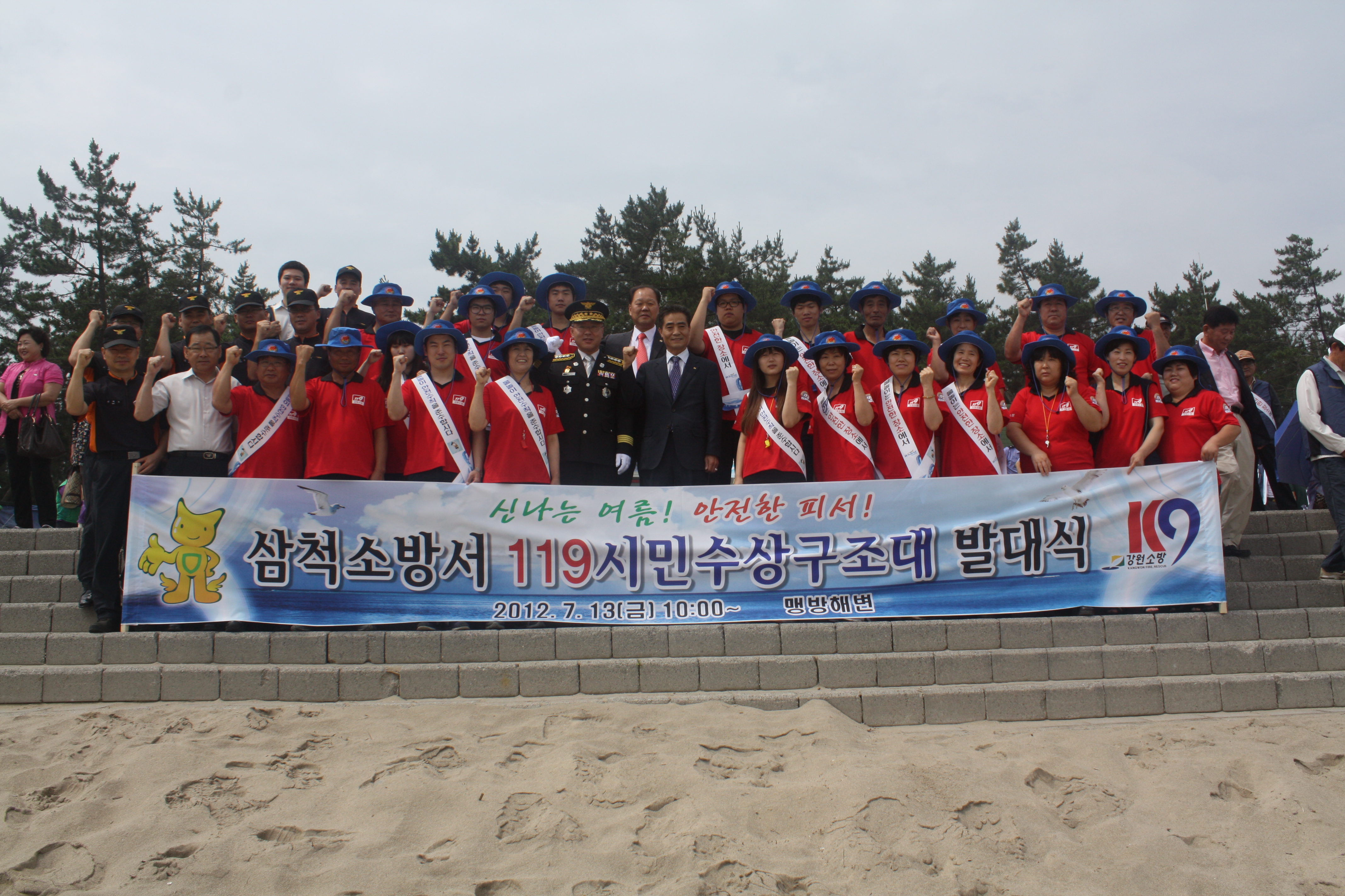 삼척소방서(서장 이지만)는 13일 10시 맹방해변 개장식에서 피서객과 시민들의 안전을 위한 "해변119구급대 및 119시민수상구조대" 발대식을 갖고, 시민수상구조대와 함께 해변 정화 운동을 실시했다.