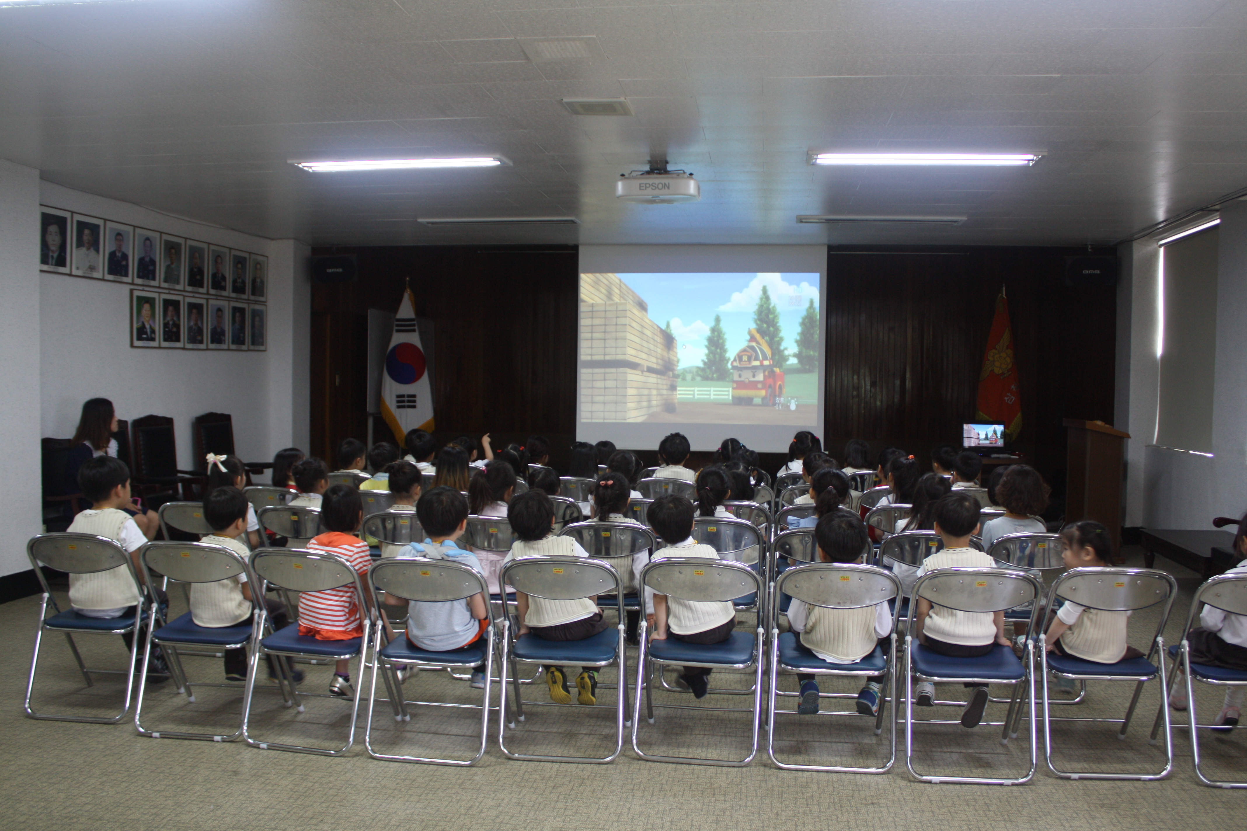 다솔유치원에서는 5세 37명, 6세 51명, 7세 46명의 학생들이 소방서를 방문하여 소방서의 역할, 소방관이 하는 일, 화재시 대피요령과 신고방법, 물소화기 체험 및 소화기 사용법 교육을 실시한다.