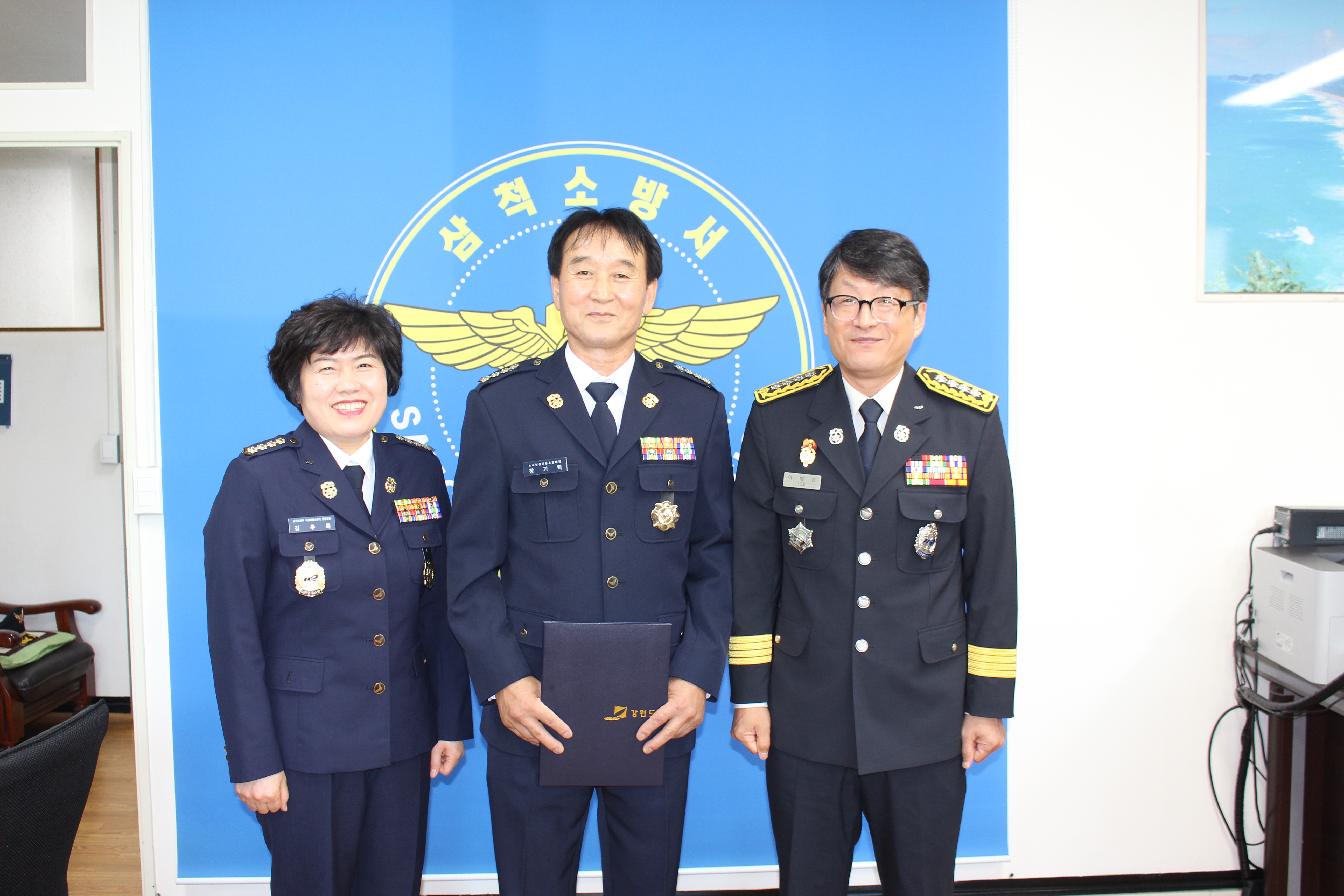 10. 8. 장기택 신임 노곡남성의용소방대장의 임용장 수여식을 서장실에서 진행했다.