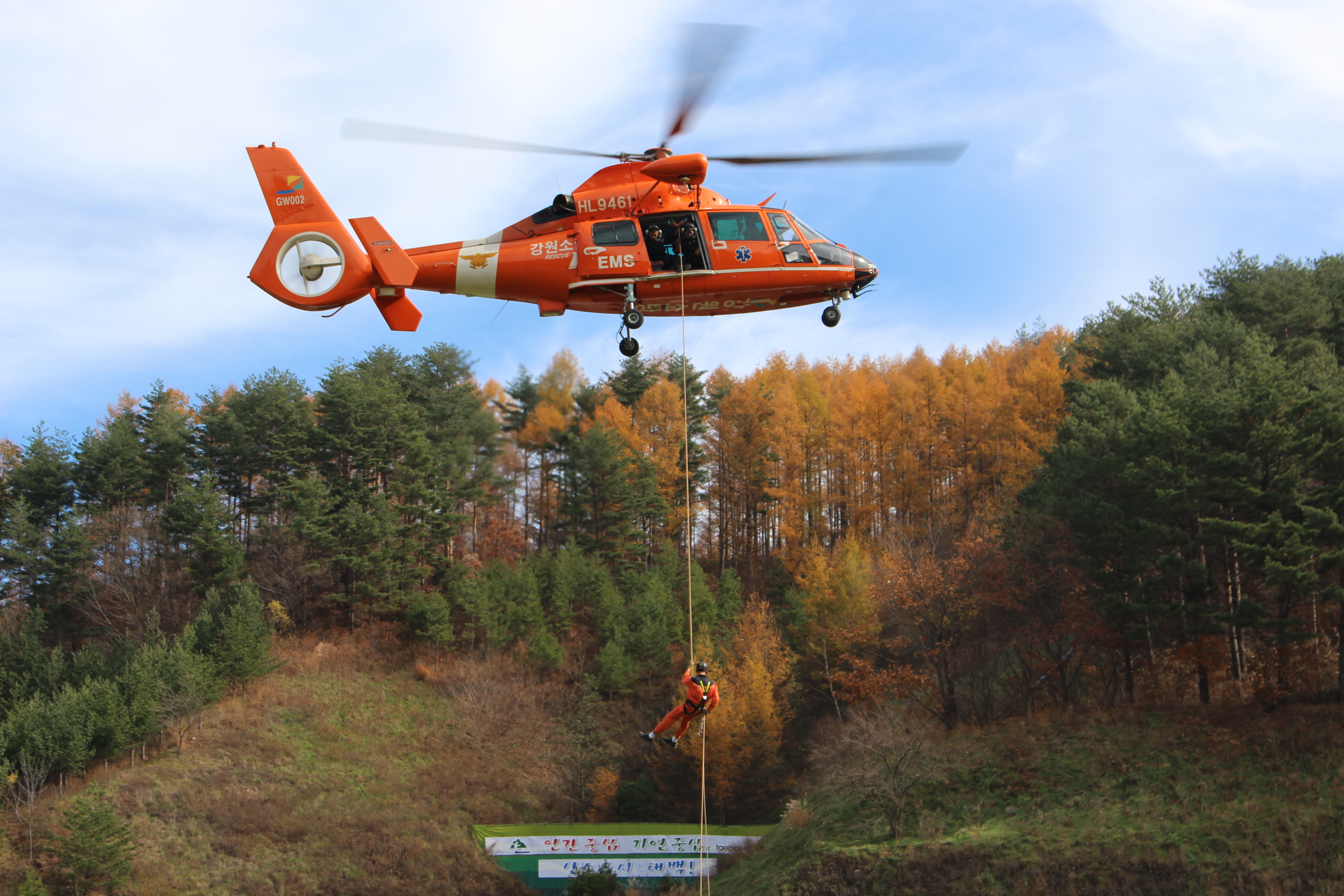 태백종합운동장내 잔디구장에서 이루어진 이 날 훈련은 강원도특수구조단과 함께 진행되었습니다.