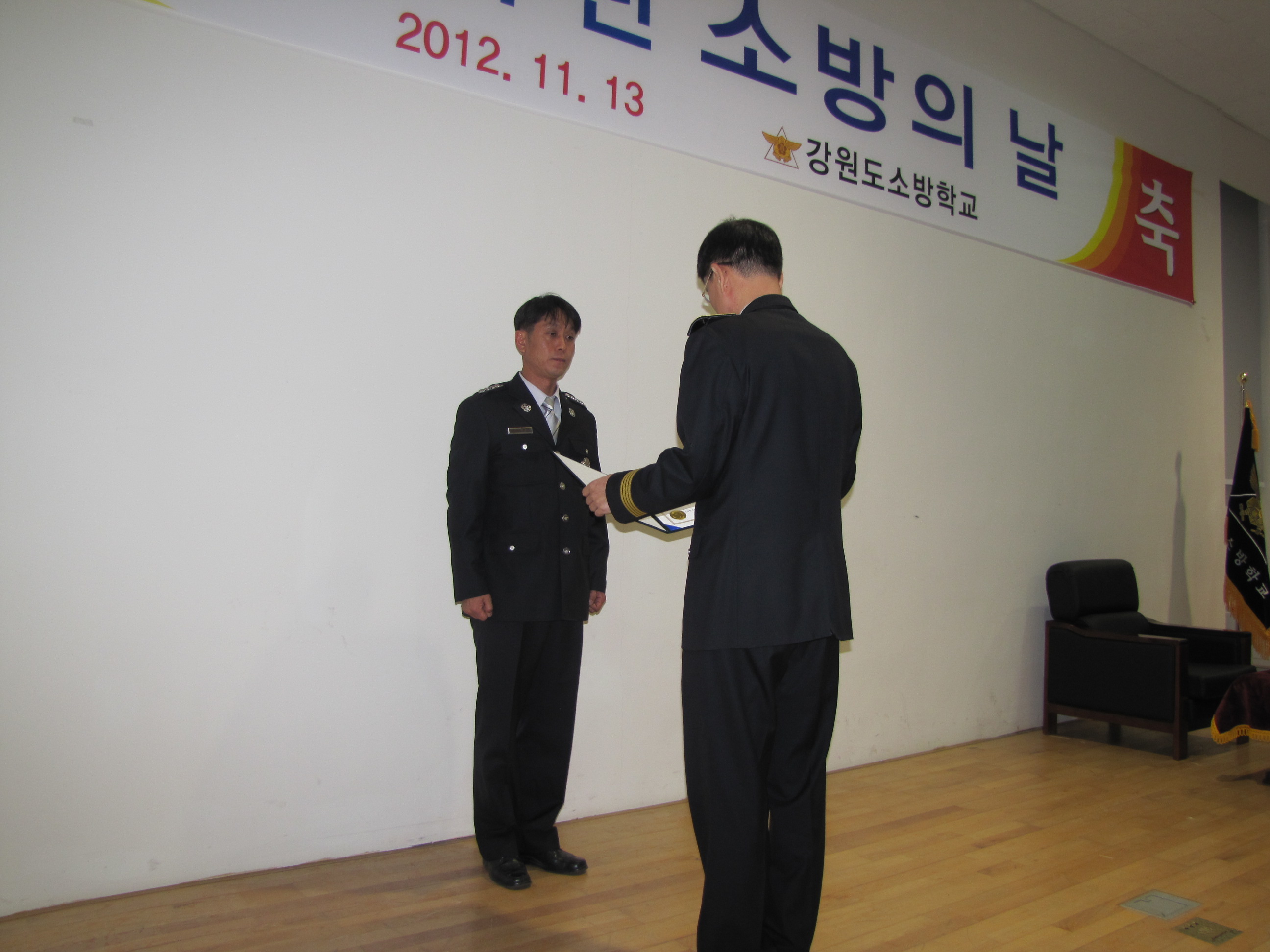 강원도소방학교(학교장 정병도)는 11월 13일 오전 10시 소방학교 대강의실에서 교직원 및 교육생 80여명이 참석한 가운데 화기애애한 분위기속에서 "제50주년 소방의 날" 기념행사를 실시했다.