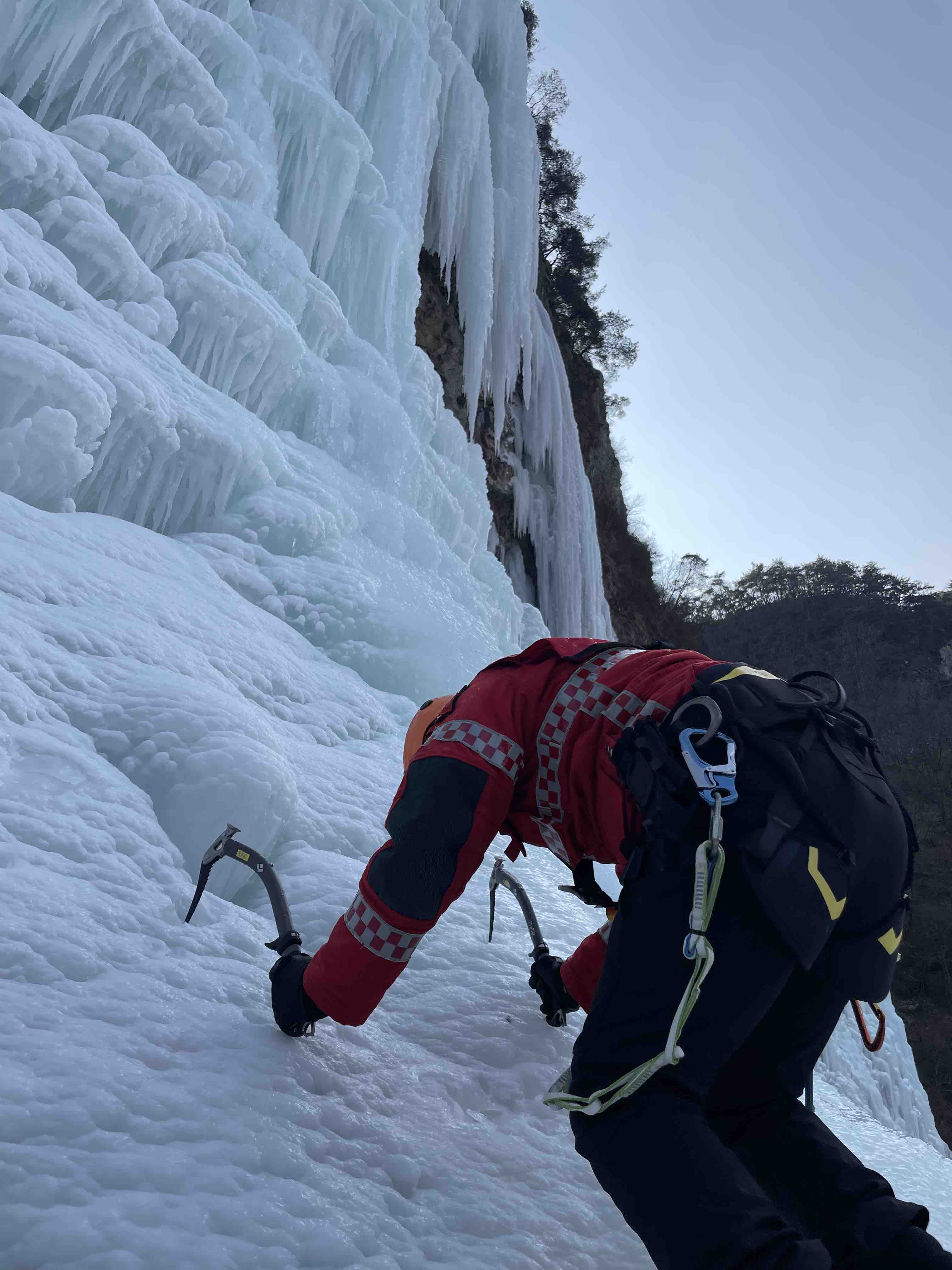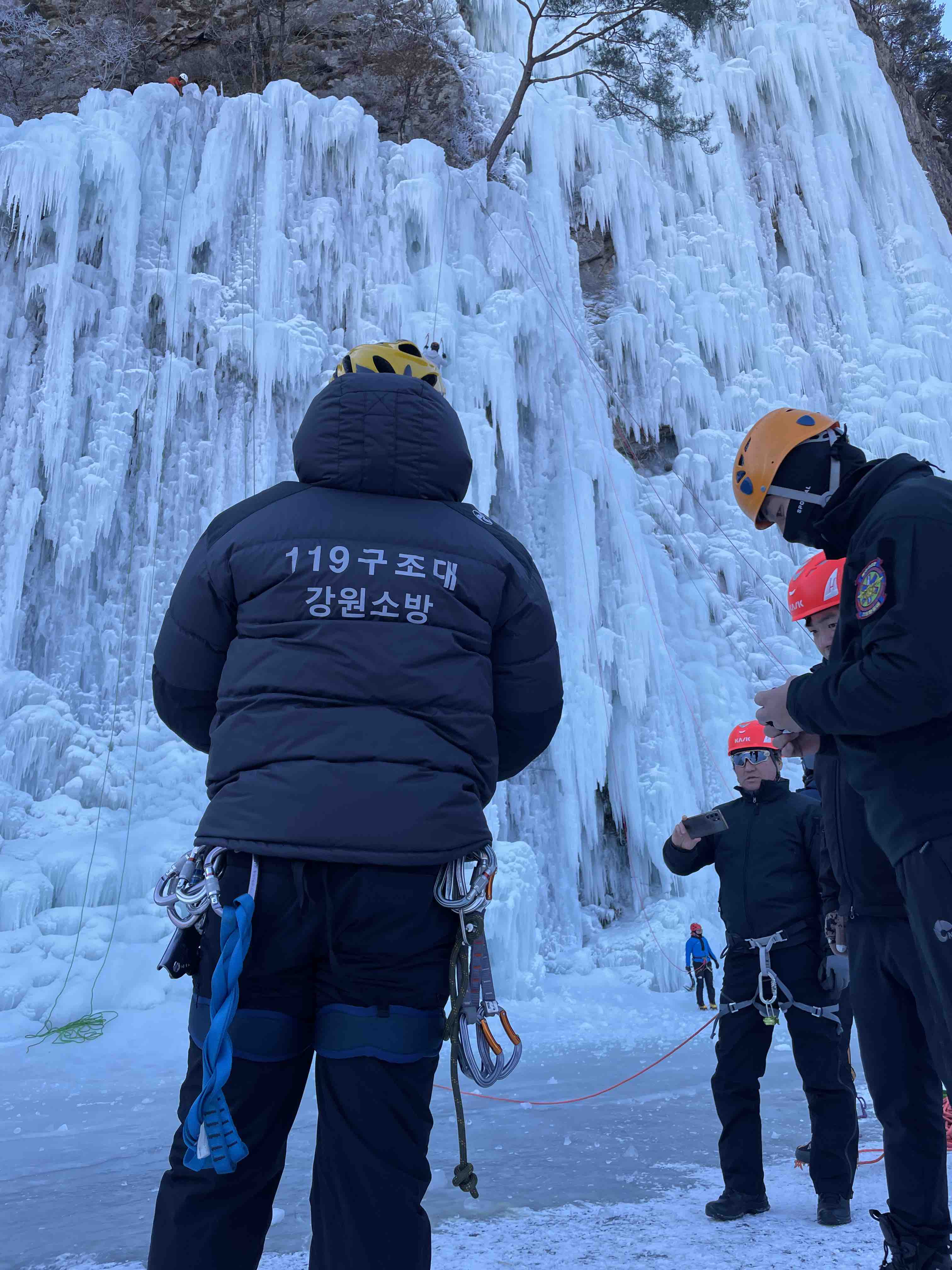 강원119특수대응단, 빙벽 위 추락사고 대비 고난도 구조 훈련 전개