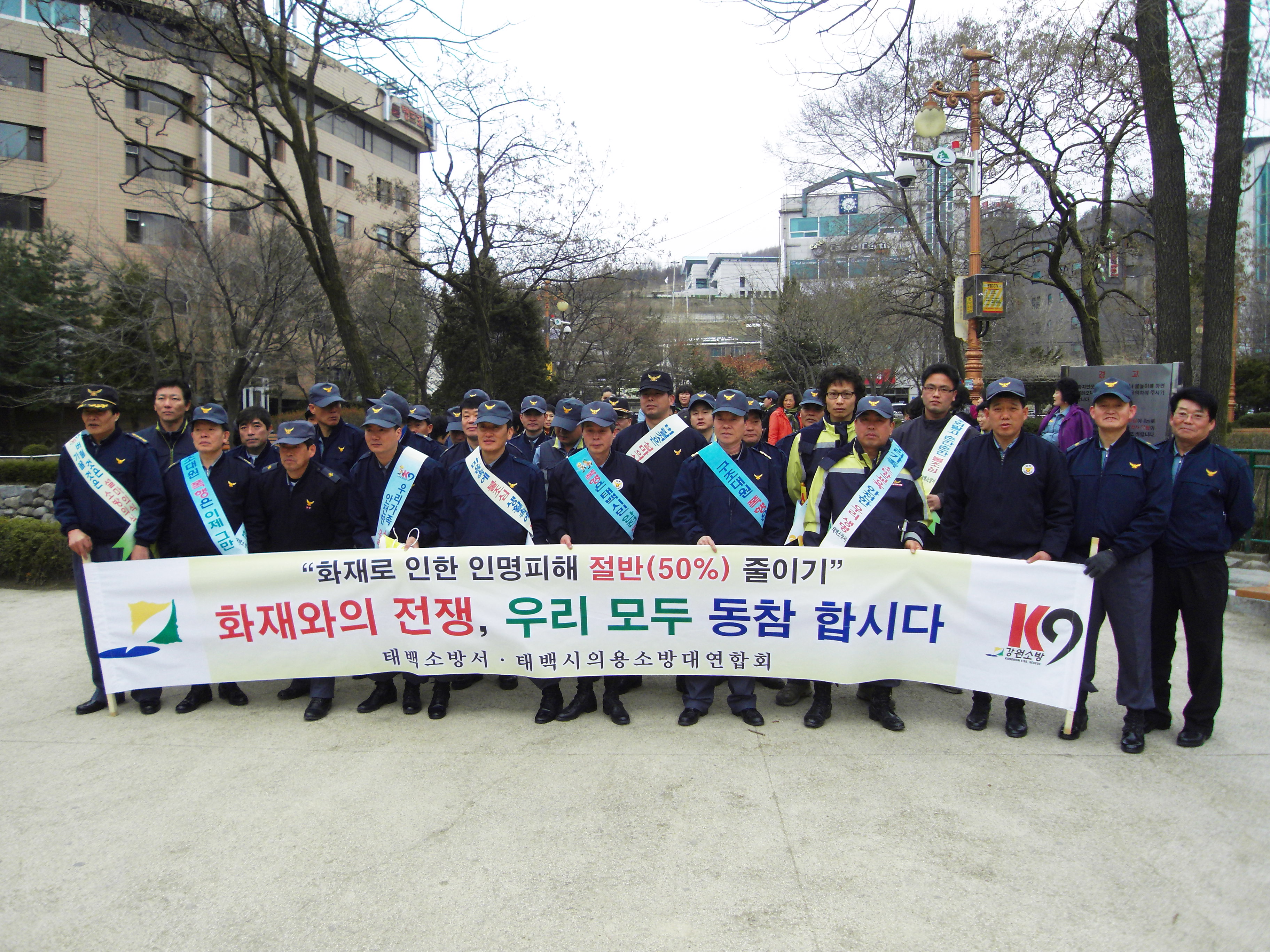 황지연못 에서 산불과의 전쟁선포 및 산불조심 안내장 배포