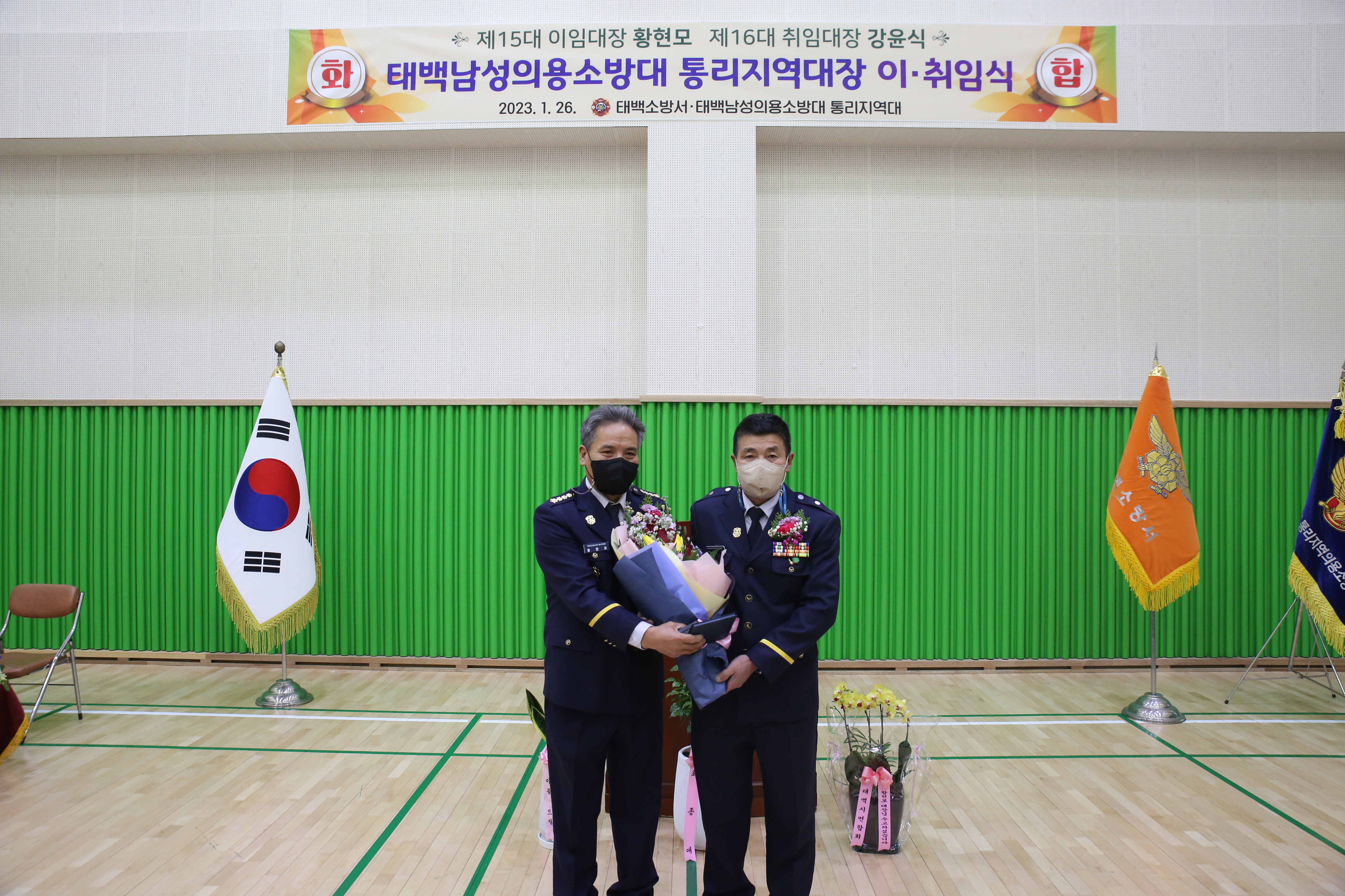 태백소방서(서장 김재석)는 26일 오전 11시 통리초등학교 체육관에서 태백남성의용소방대 통리지역대장 합동 이· 취임식 행사를 개최했다고 밝혔다.