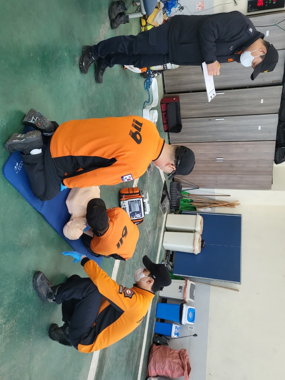 평가 항목은 ▲공기호흡기 장착 및 비상호흡법 ▲로프매듭법 및 기구묶기 ▲수평구조 ▲팀워크 CPR 등이다.