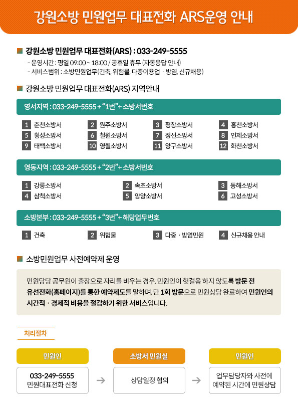 강원소방 민원업무 대표전화 ARS 운영 안내