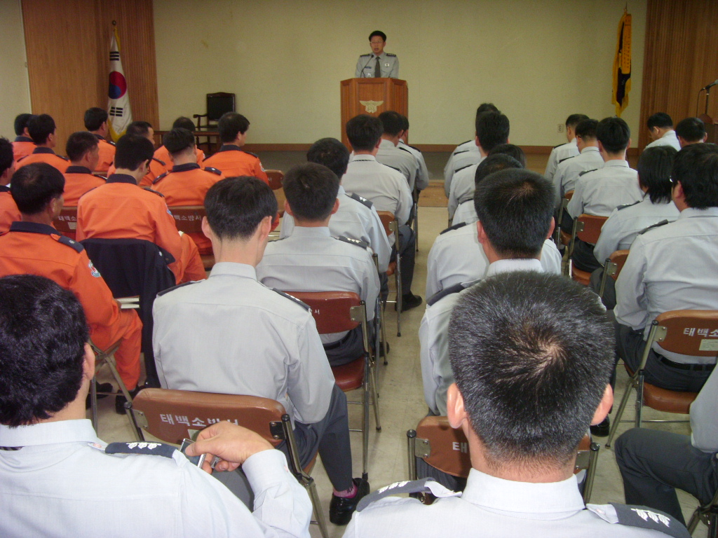 태백소방서(서장 정승진)는 10월 5일(월) 오전 대회의실에서 전직원이 참여한 가운데 10월 전직원교육(월례조회) 시간을 갖고 9월 25일자 신규 및 전입직원과 직원들간의 따뜻한 인사를 나누었으며, 교대근무체제 변경 관련 근무철저 및 기본업무 추진에 만전을 기할 것 등을 당부했습니다.