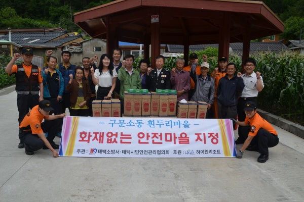 태백소방서(서장 석교준)는 16일 강원 태백시 구문소동 흰두리마을을 화재없는 안전마을로 지정했다.