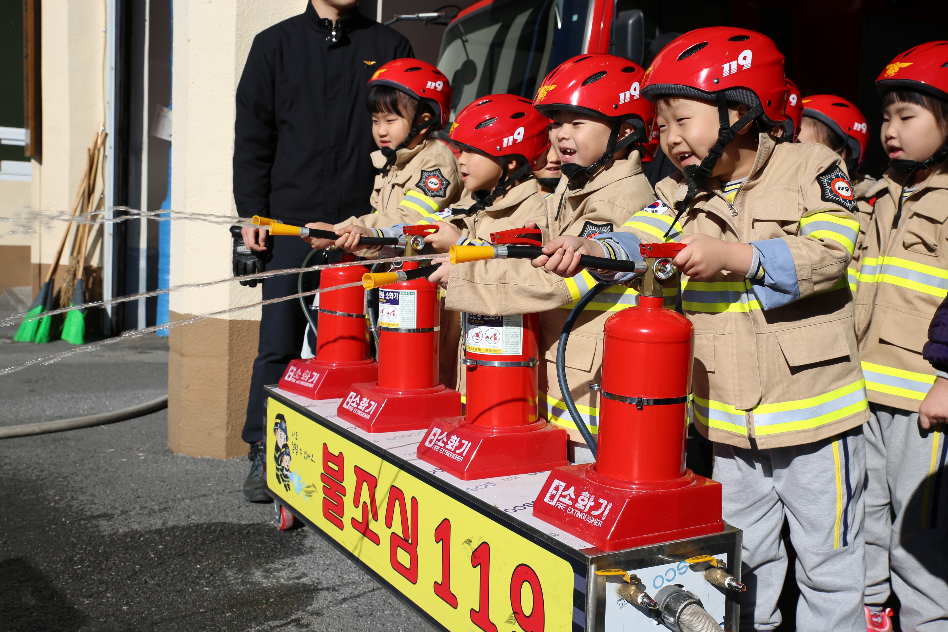 교육 내용은 소방이 하는 일 소개, 동요를 통한 안전교육과 소방장비 체험으로 채워졌다.